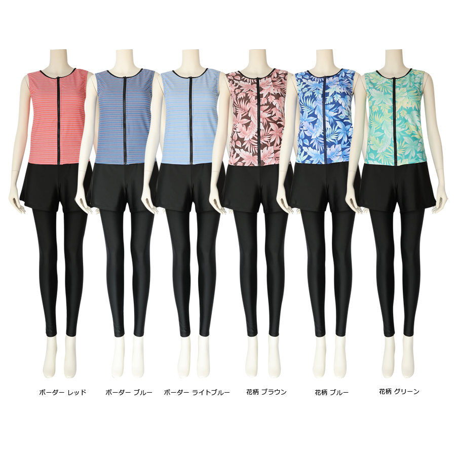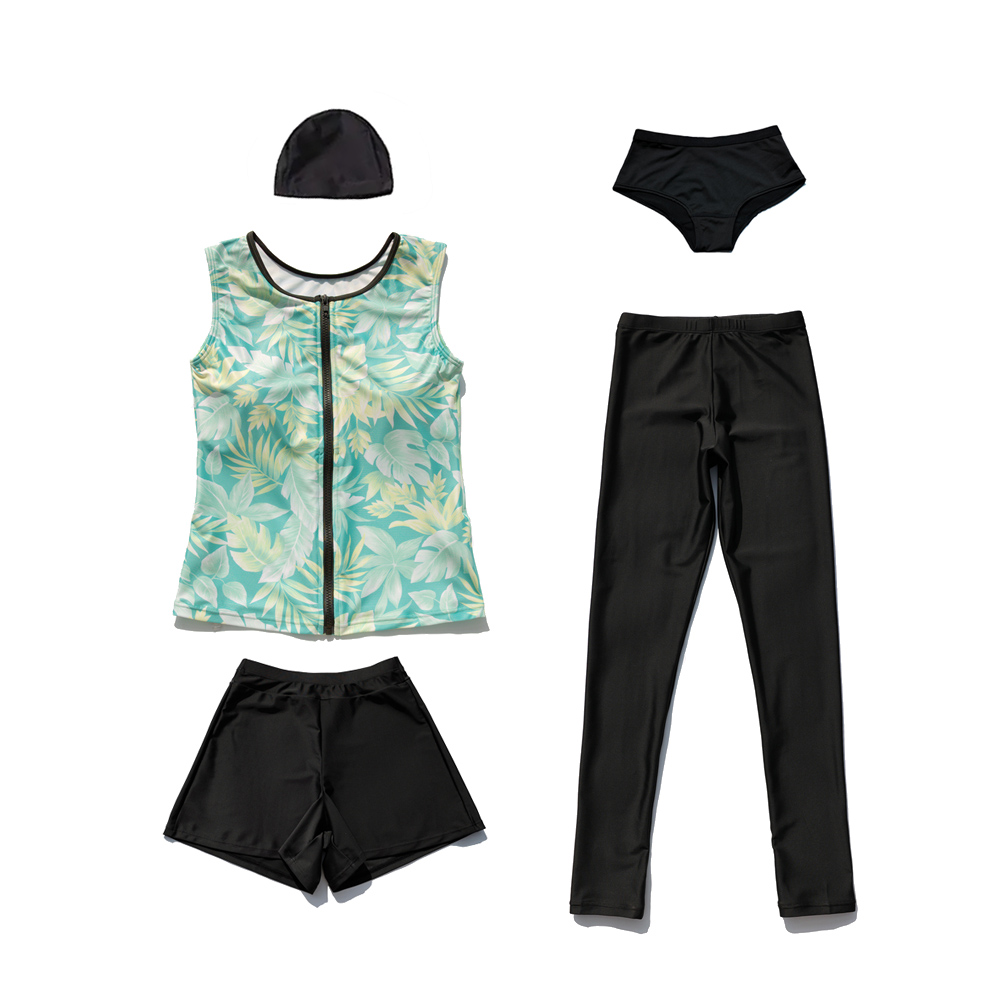 インナーショーツ、レギンス、ショットパンツとタンキニ5点セットフィットネス水着 [ZC435(8054)]