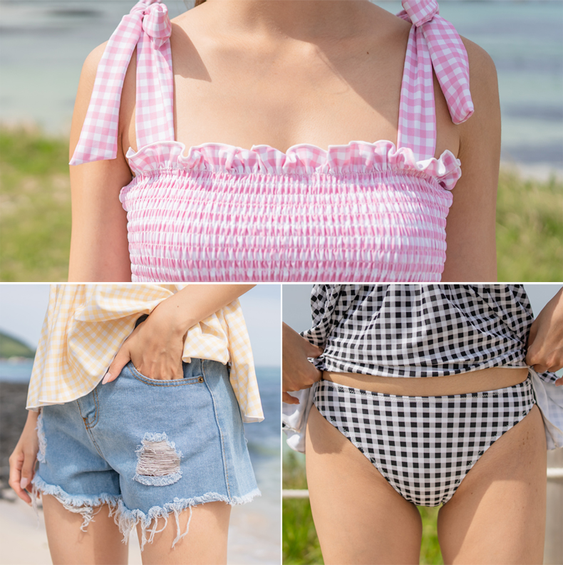 ジャーリング仕様カップ付きワンピースとショーツセット水着、デニムパンツは別売り [SYZ2007]