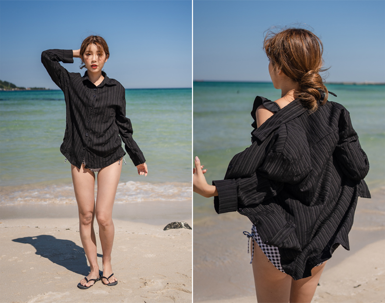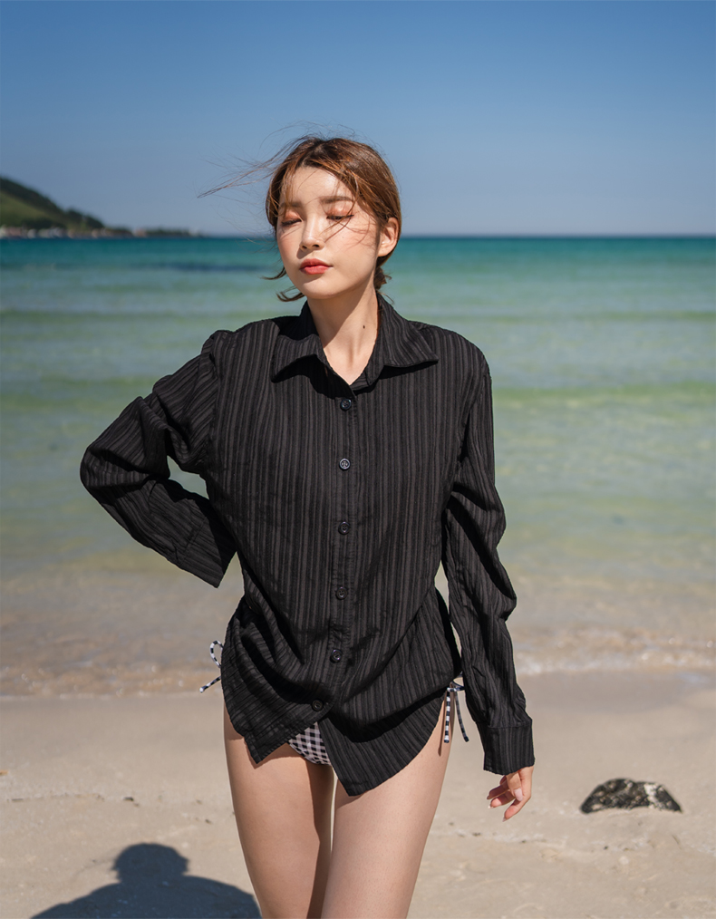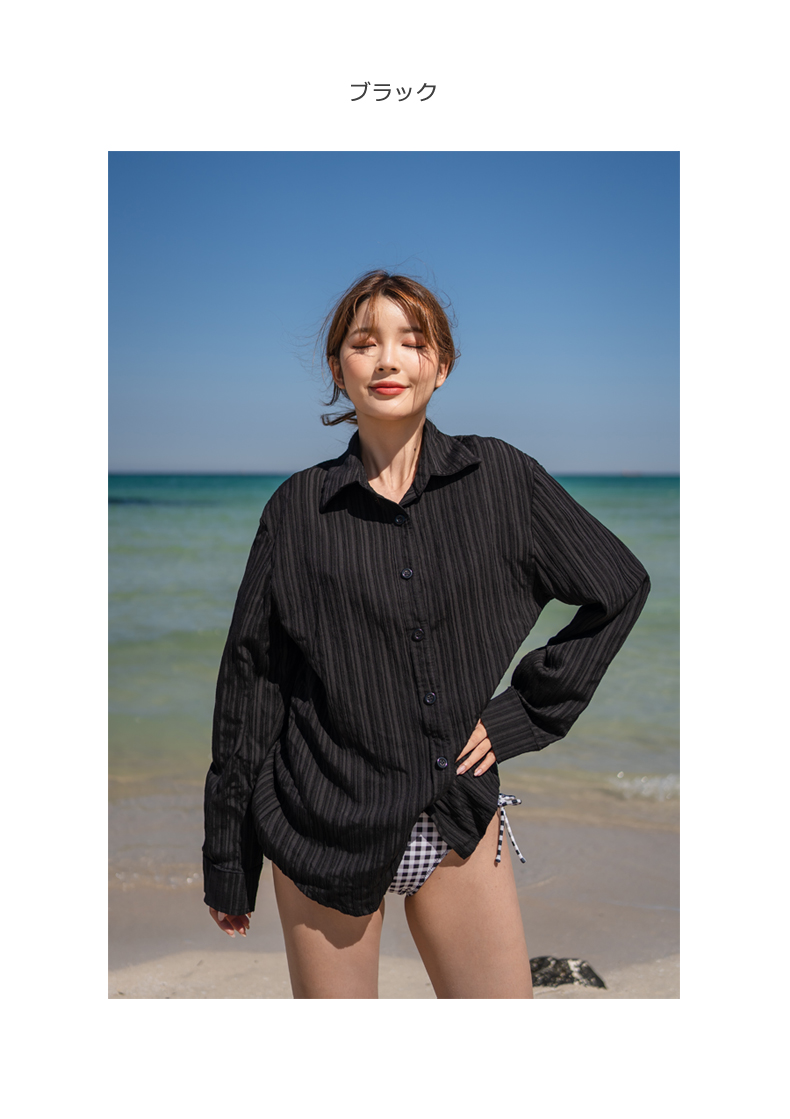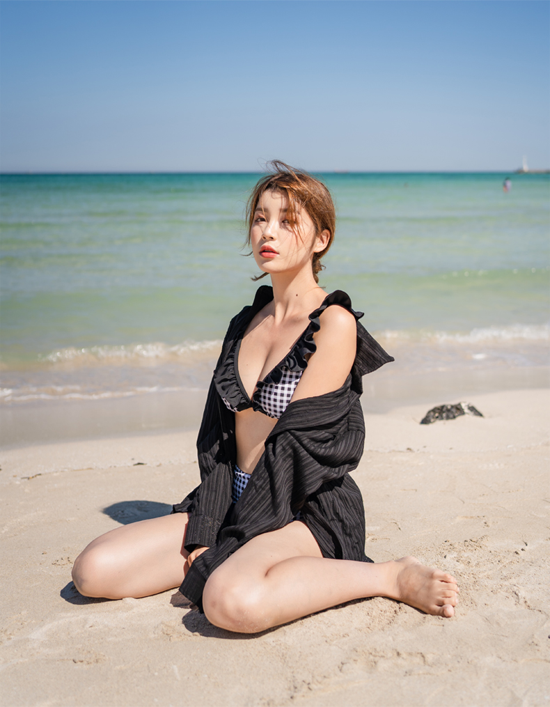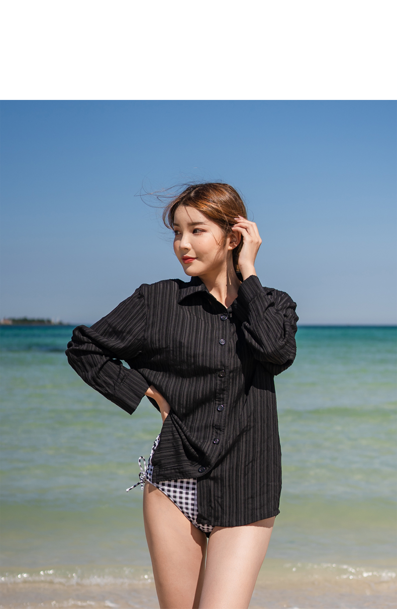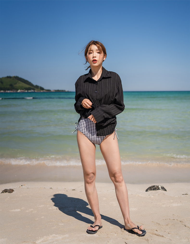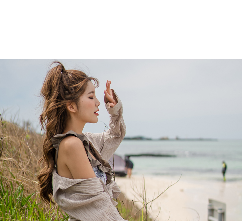 Yシャツ付きフリルブルーとハイウェストパンツの水着3点セット [SYZ2031]