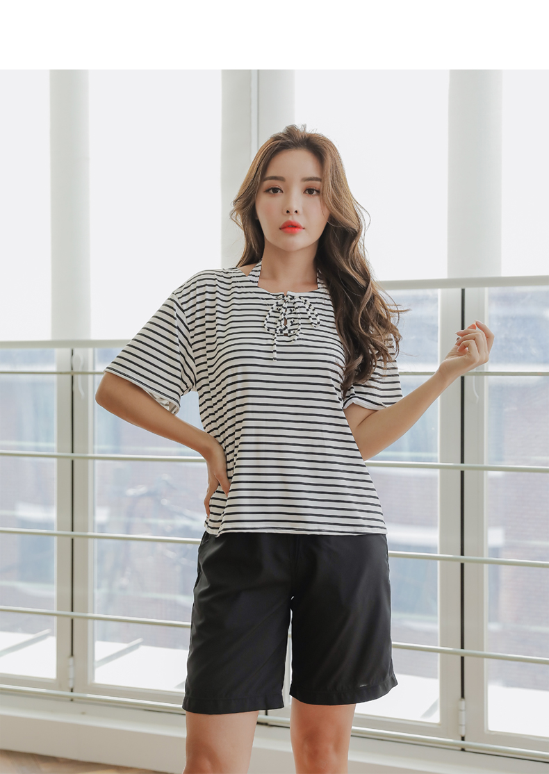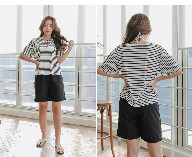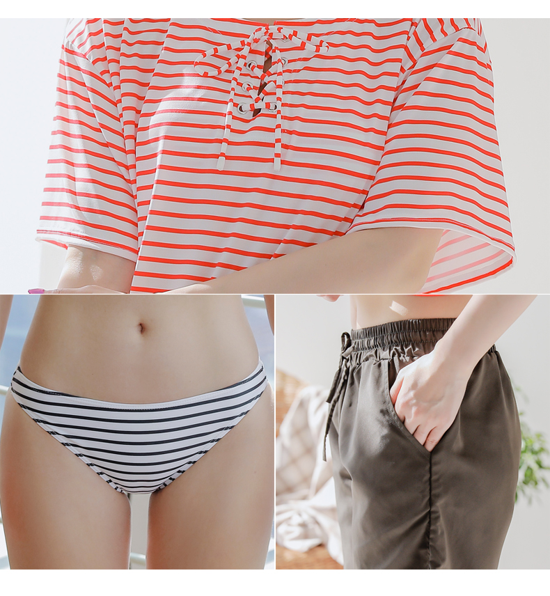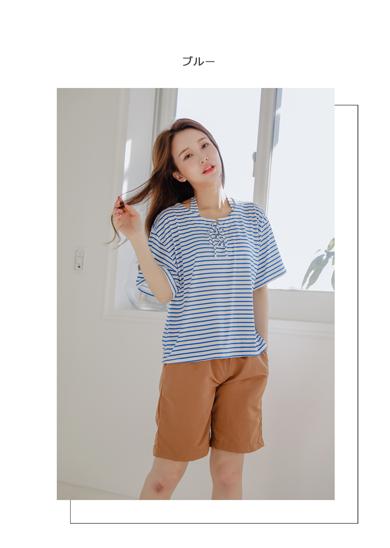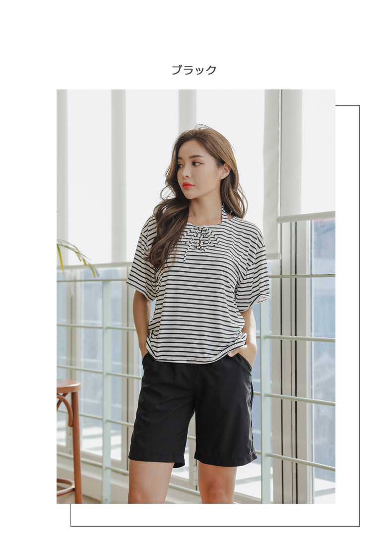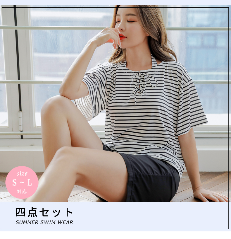 ボーダーカバーアップ4点セット水着 [CY09302]