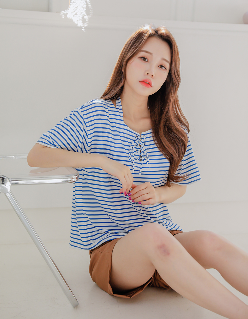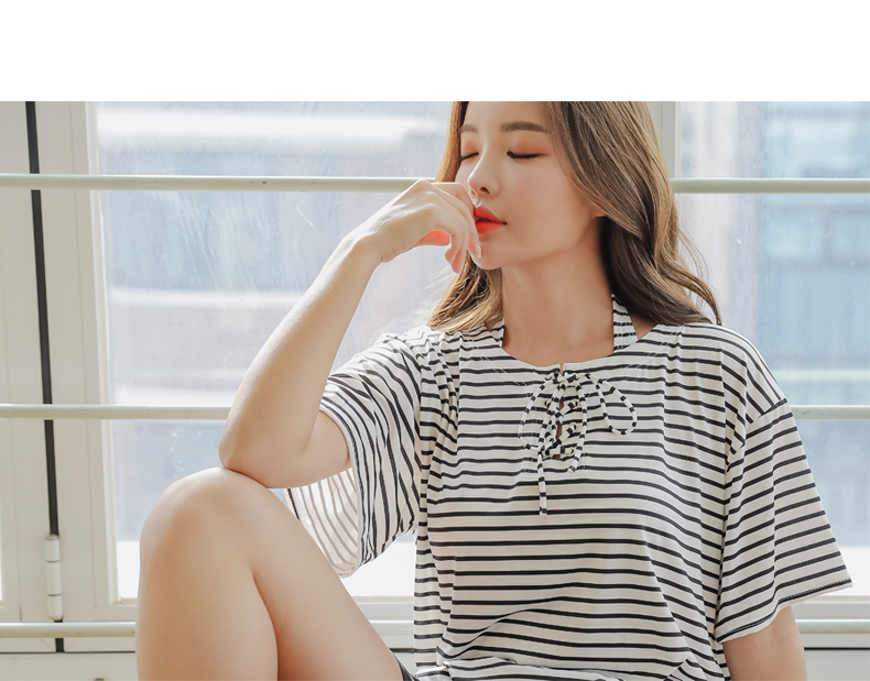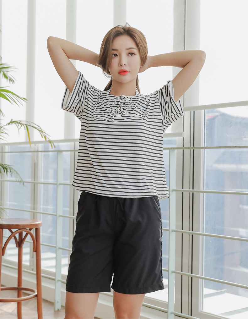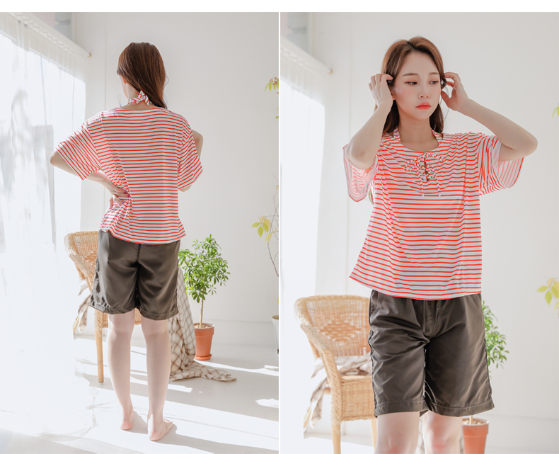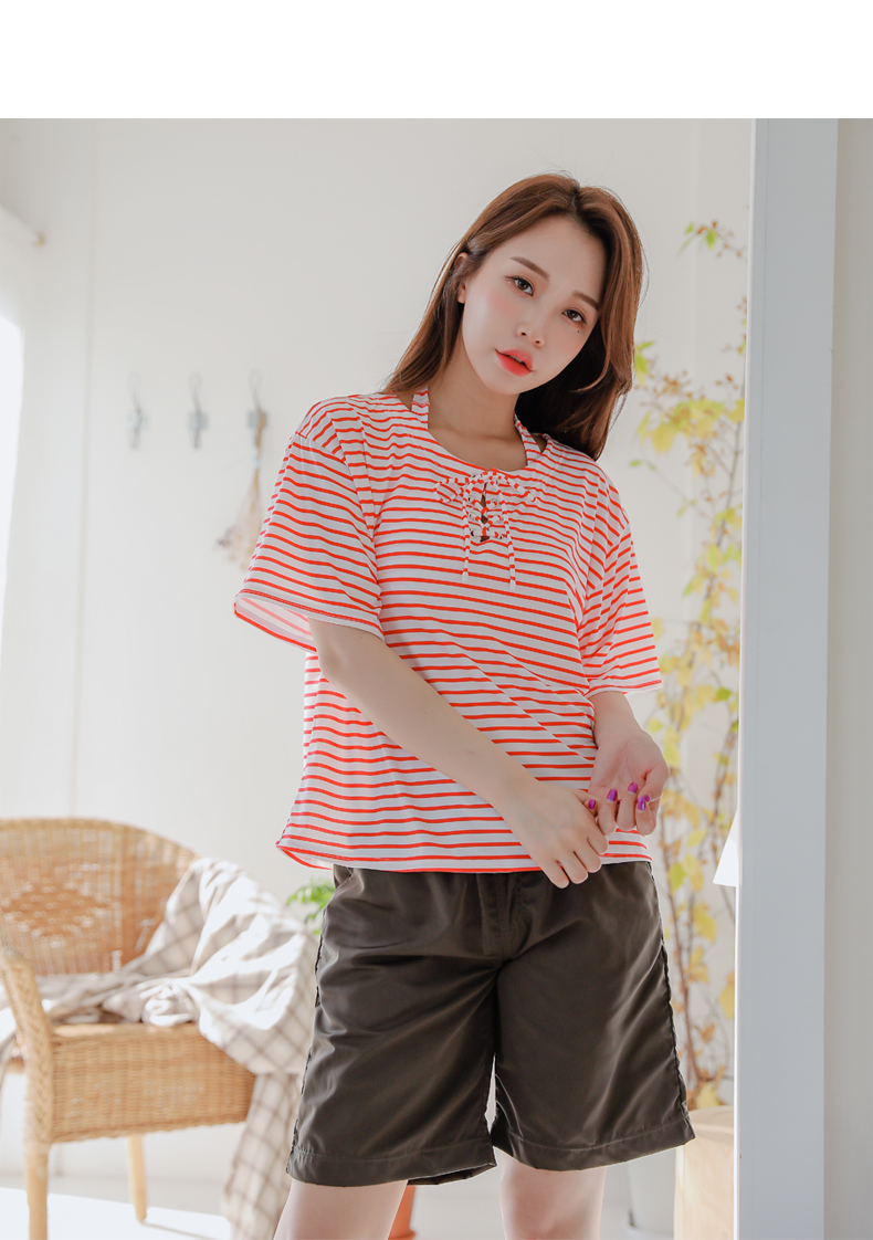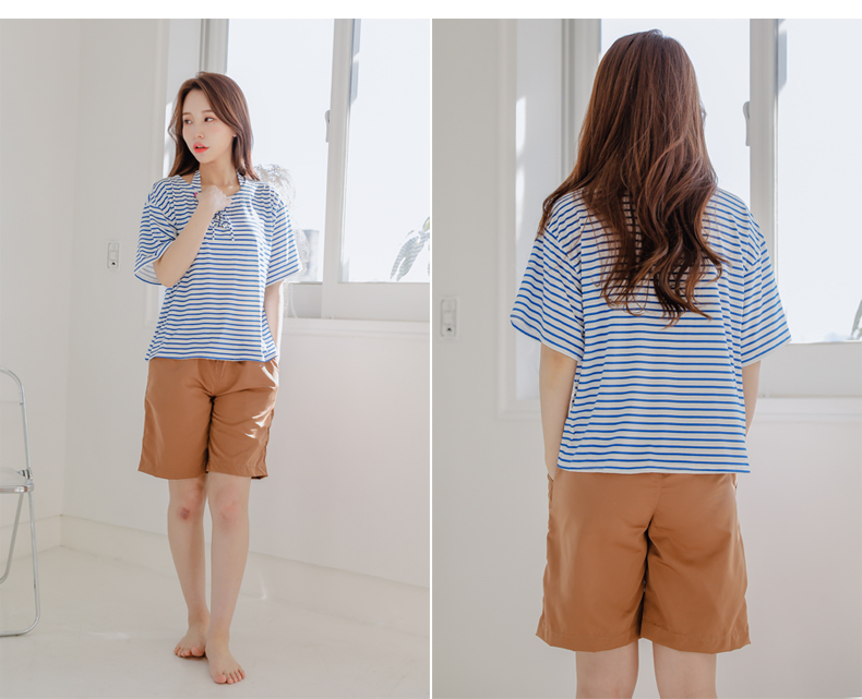 ボーダーカバーアップ4点セット水着 [CY09302]