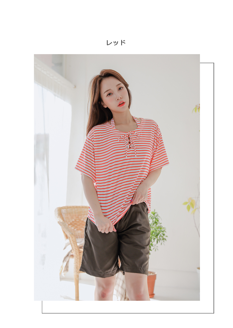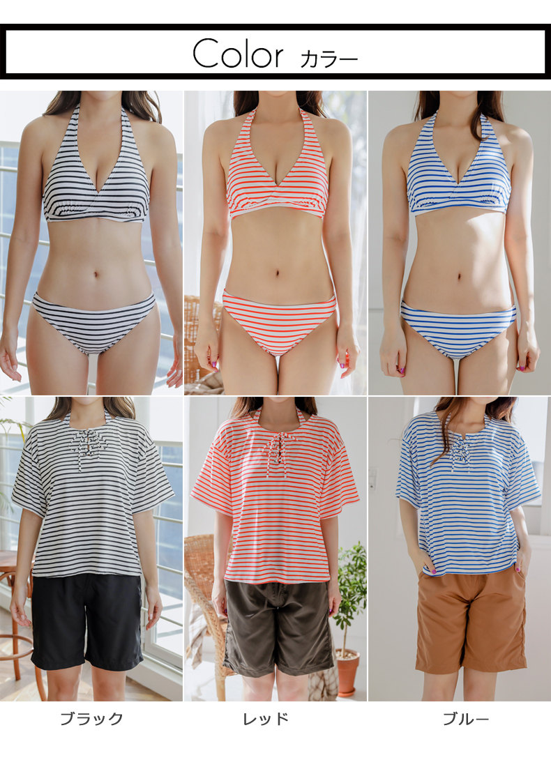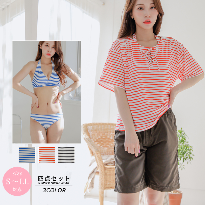ボーダーカバーアップ4点セット水着