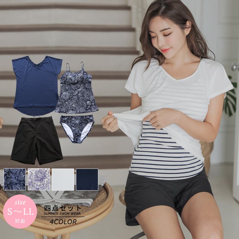 - > Tシャツとサーフパンツとボーダータンキニトプッスとショーツと水着4点セット