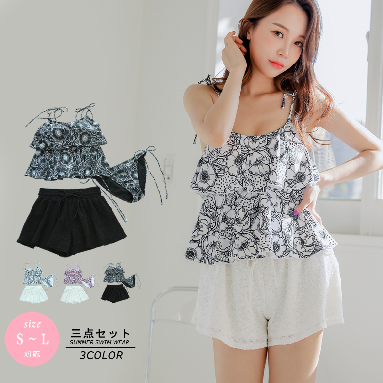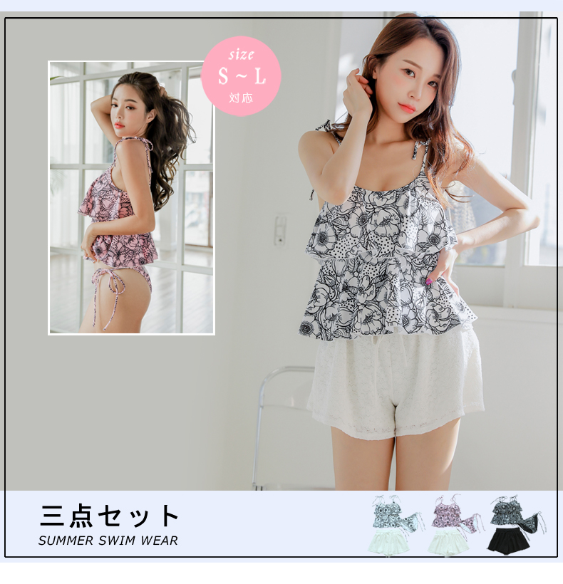 カップ付きトップス/ショーツ/サーフパンツ 3点セット水 [CY09164]