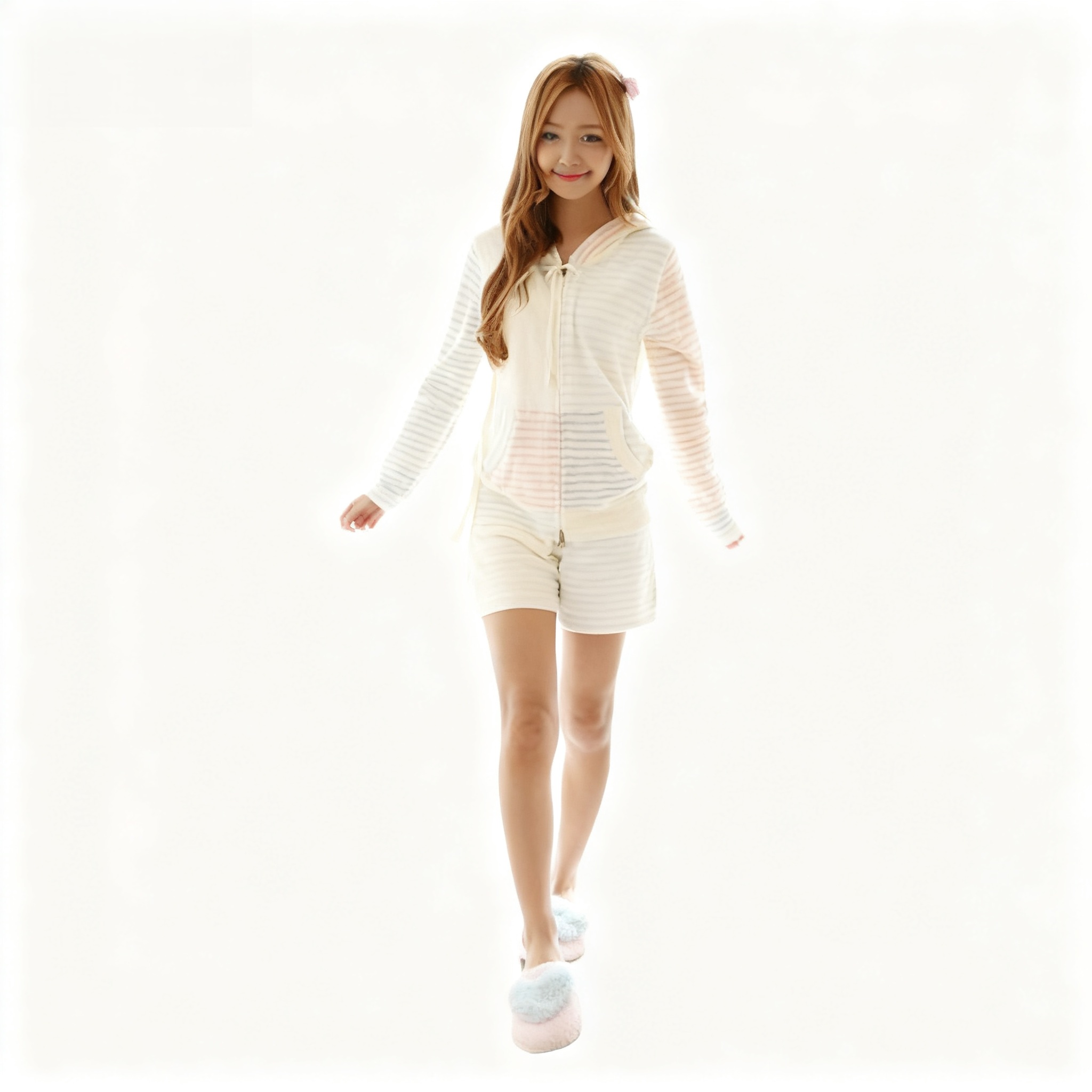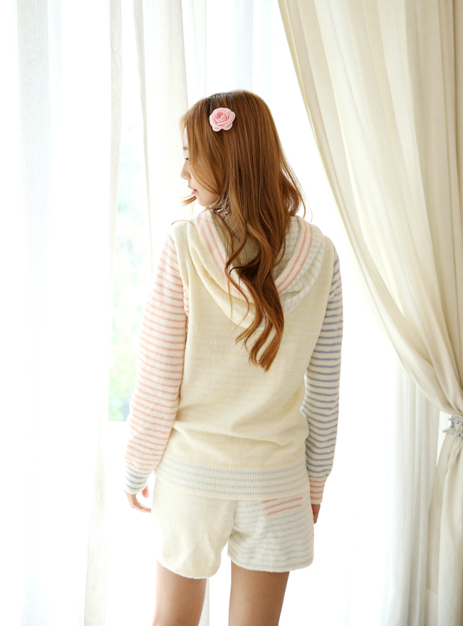 ペールトーンのボーダーが可愛い、パーカー+パンツのルームウェアセットです。