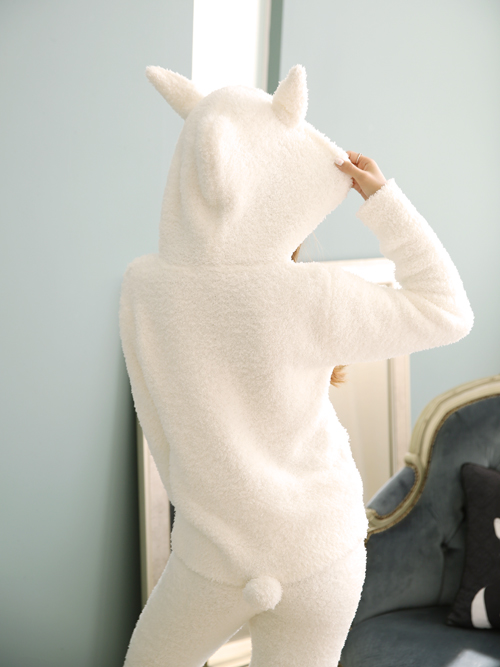 - > モコモコウサギ耳キャップ付きパカーロングパンツ上下セット