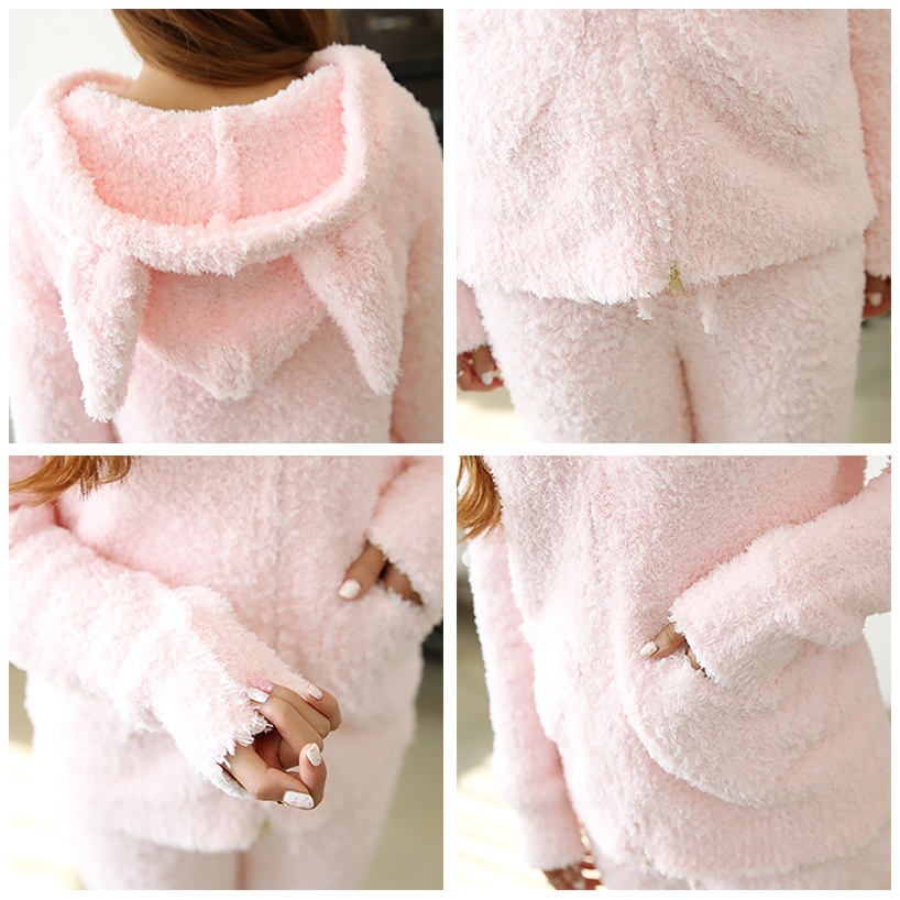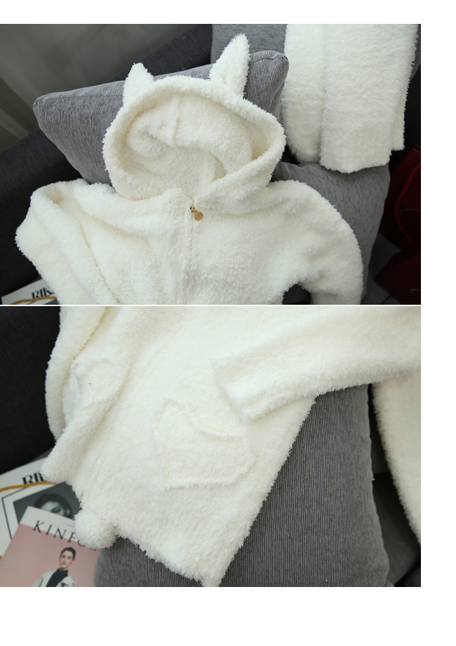 モコモコウサギ耳キャップ付きパカーロングパンツ上下セット