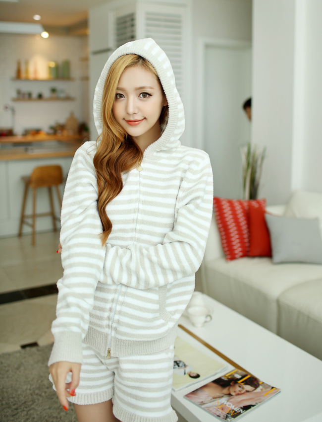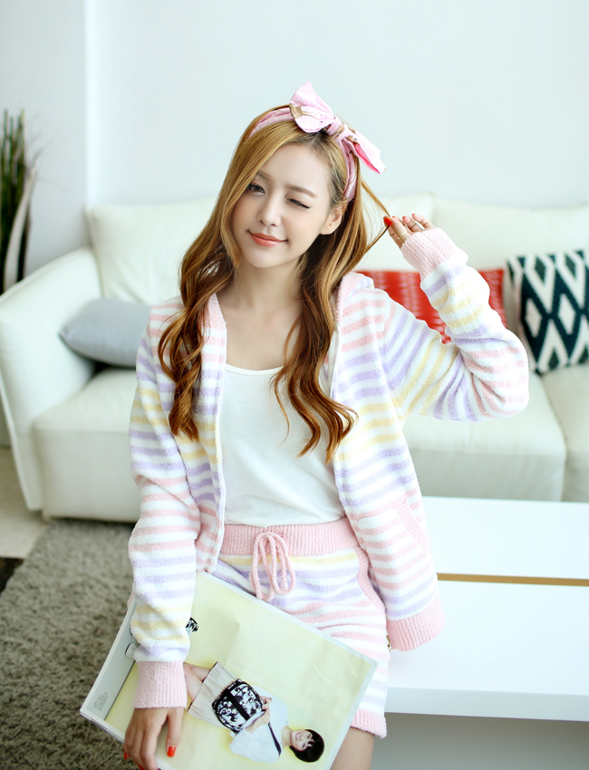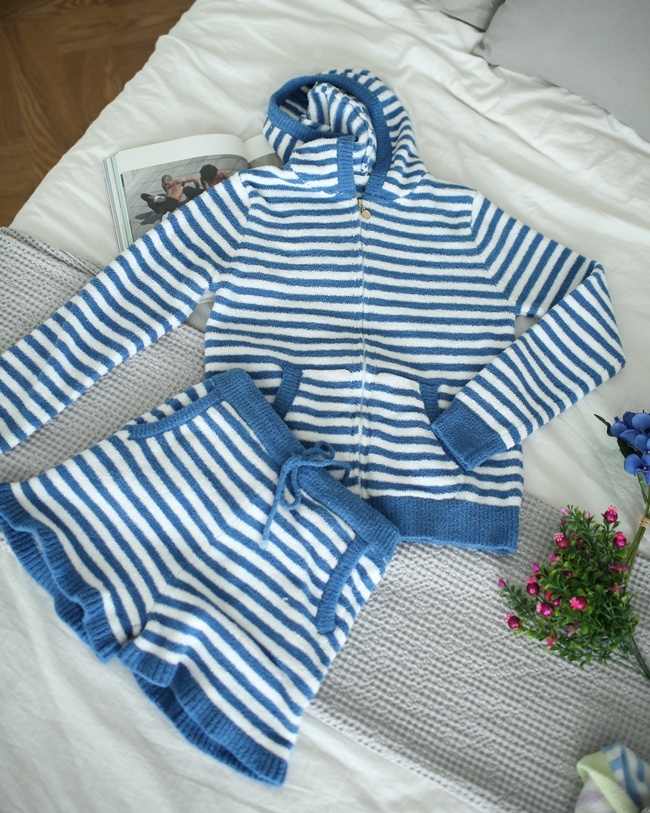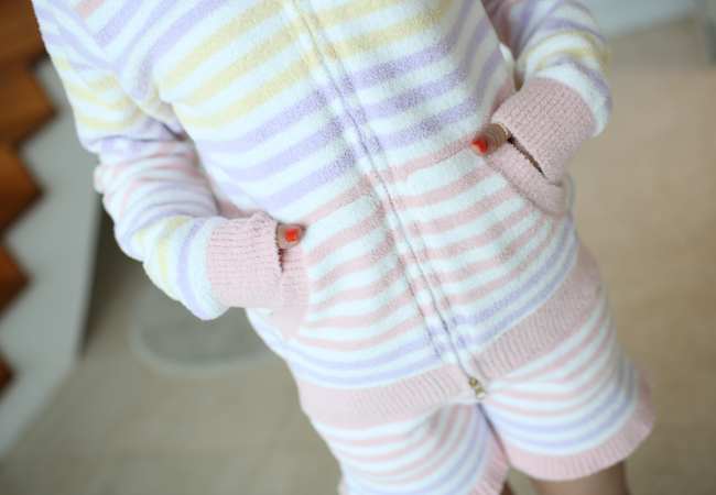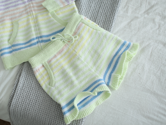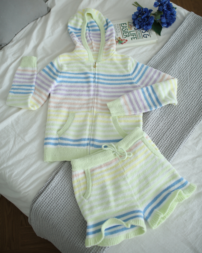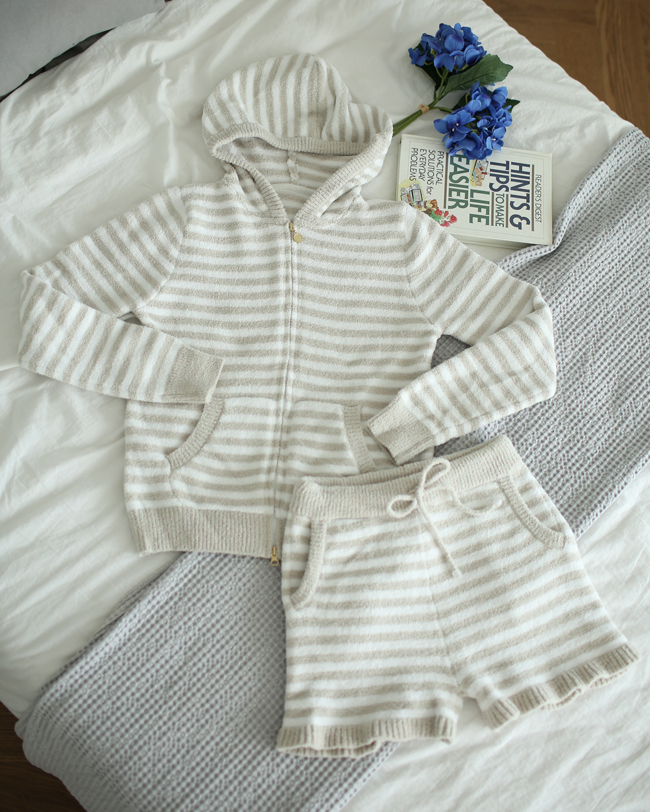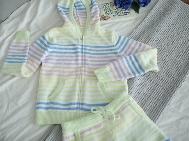 優しい色味のボーダー柄上下セット☆もこもこ、