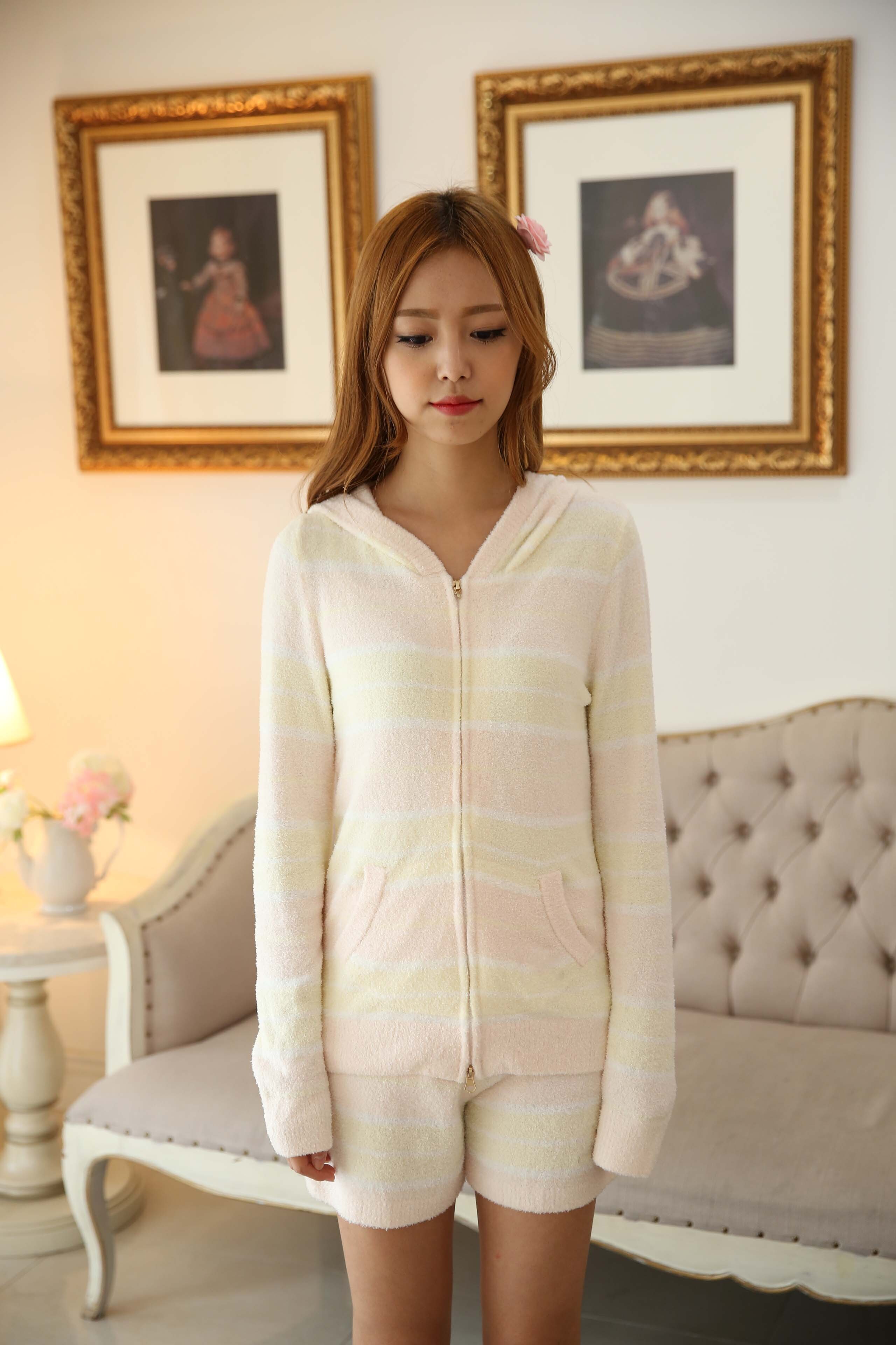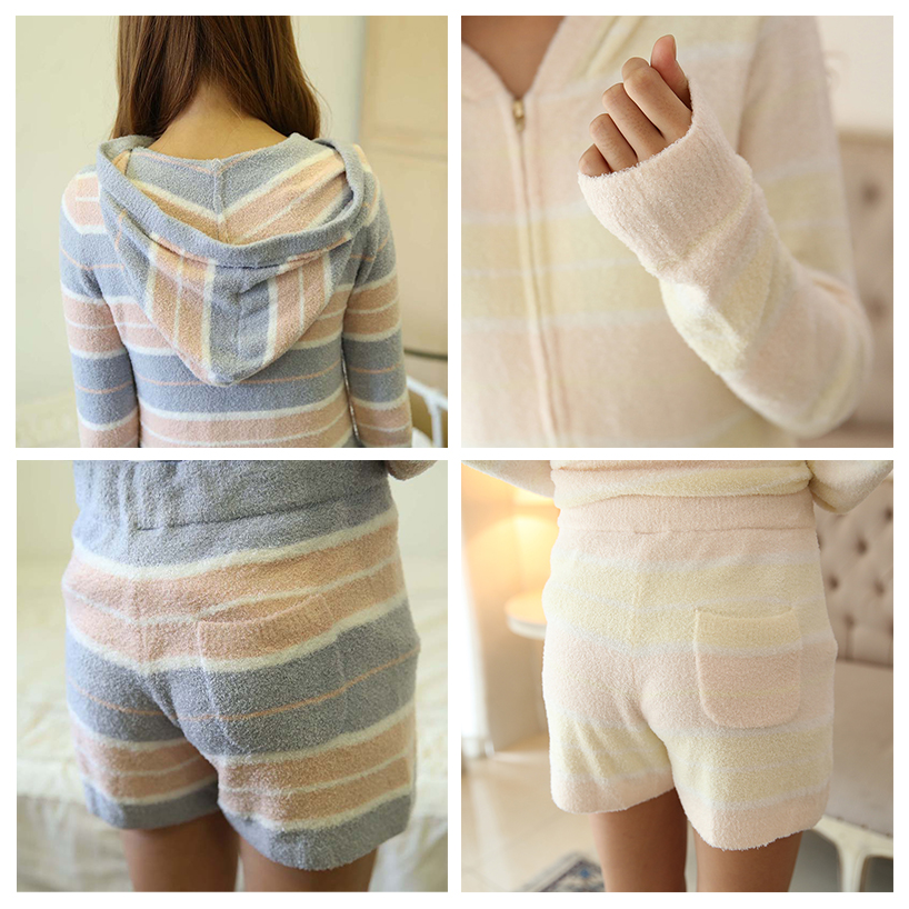 もこもこ柔らかな肌触りが心地よい、パーカー+ショートパンツのルームウェアセットです。