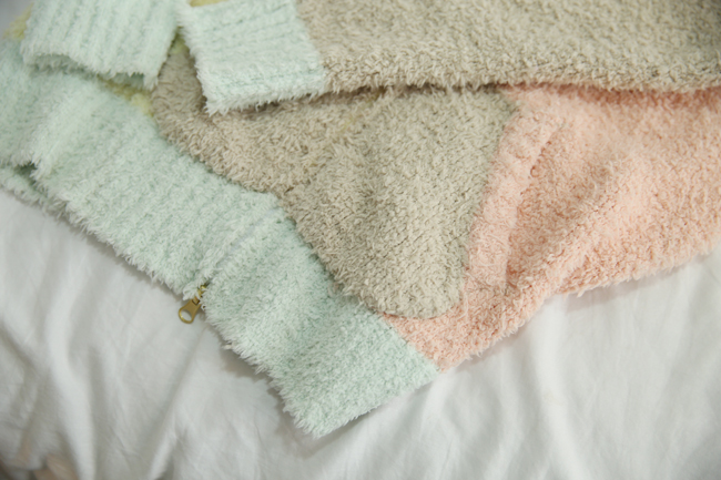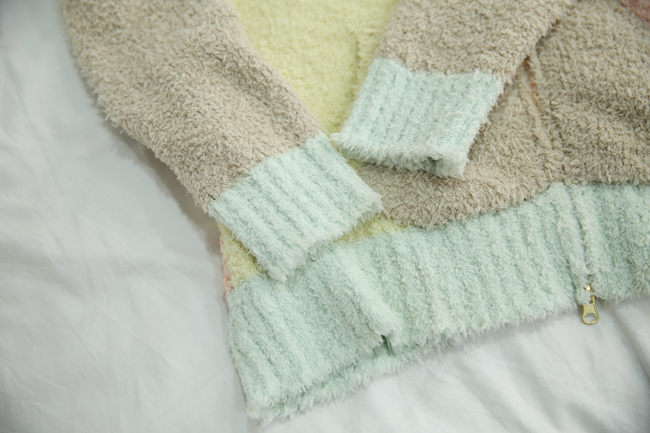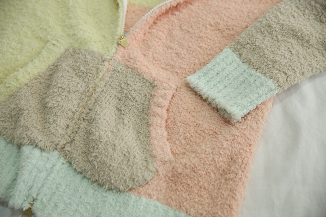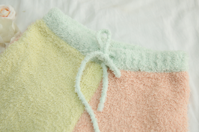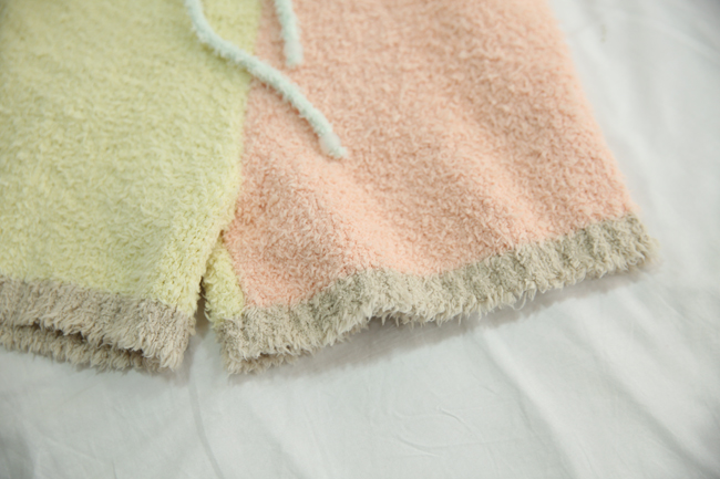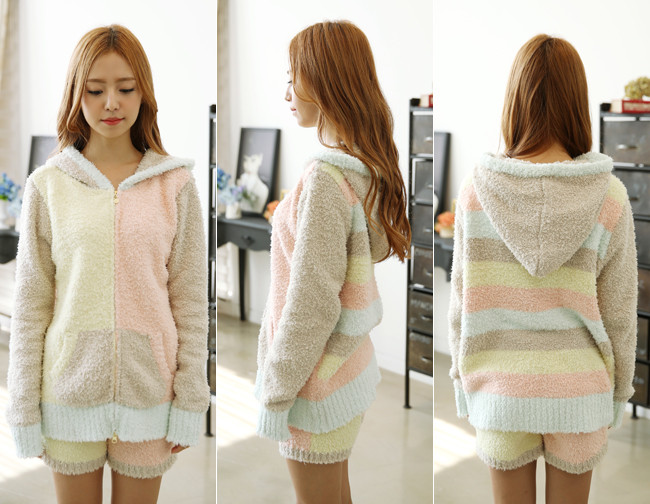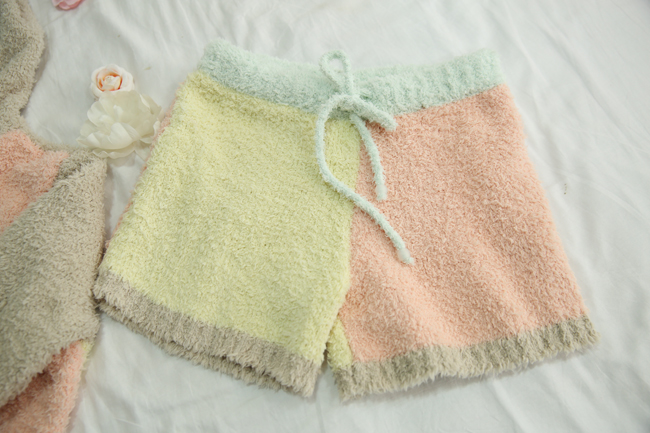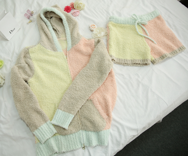 もこもこ素材のパーカ+ショートパンツのルームウェアセット。