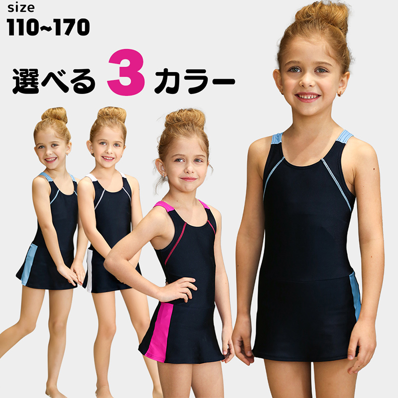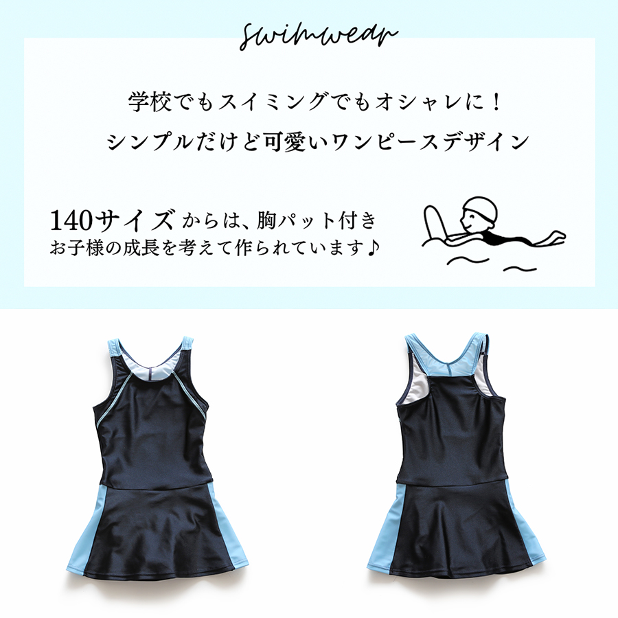 ワンピース型スクール水着 女の子 子供用 小学生 中学生 ワンピース UPF50+ 裏地付き ネームタグ付き [SKL1619]