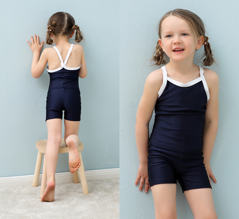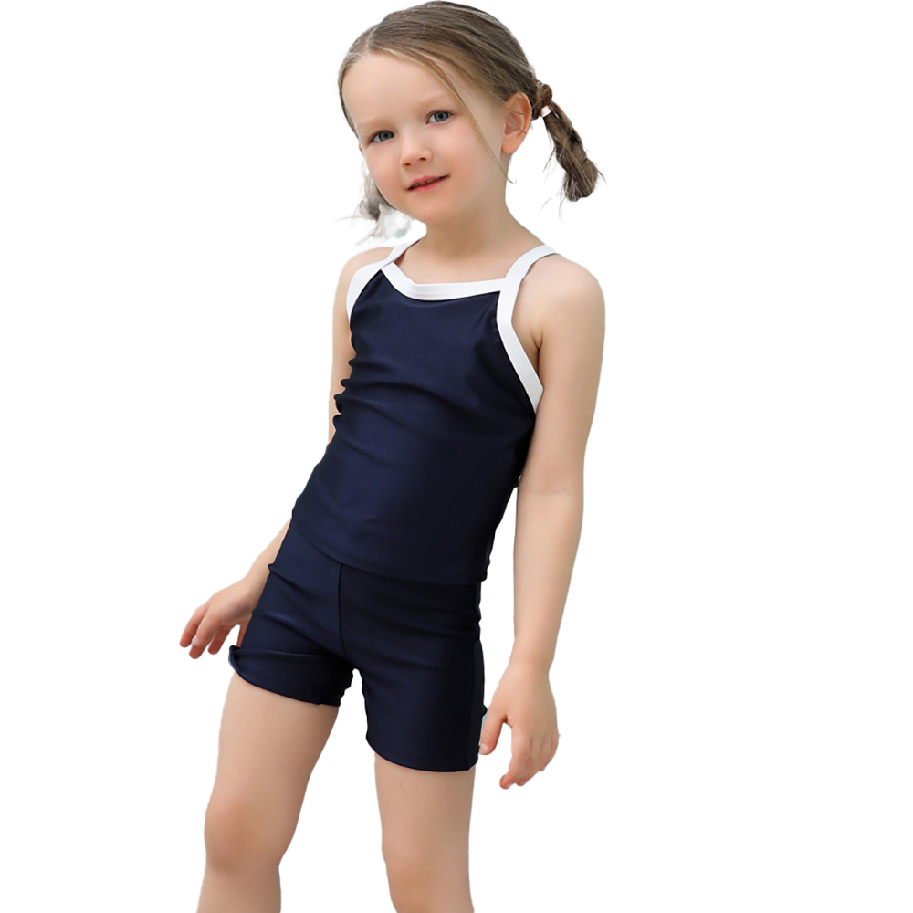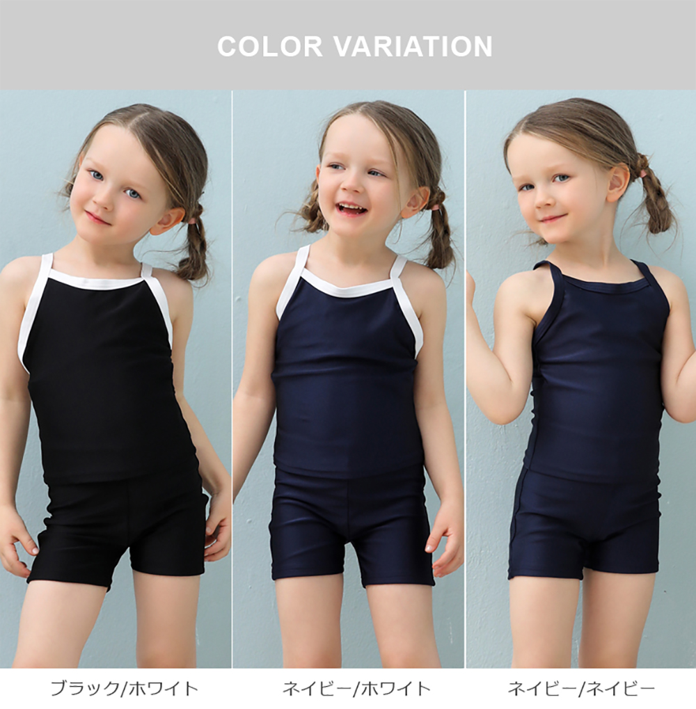 スクール水着メーカーのOEM水着 濃紺素材 UVカット スクール水着学生 キッズスクール水着 女の子用上下セパレート型 UPF50+紫外線対策加工