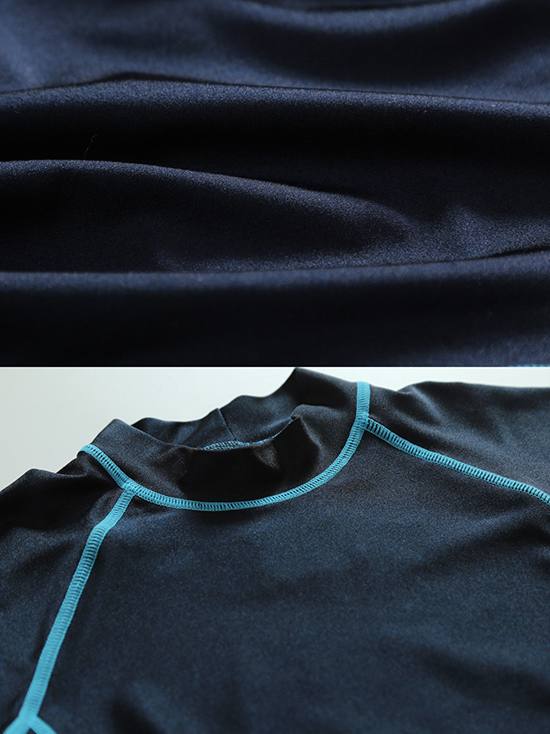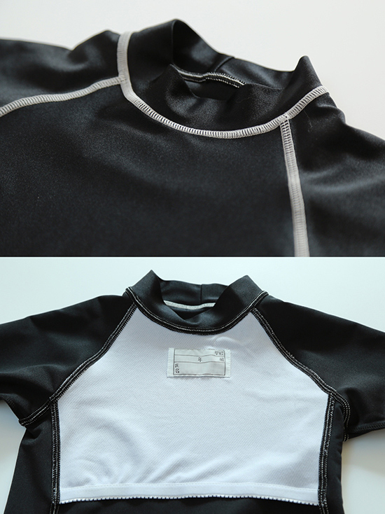 デザインはハイネックの半袖タイプで、ライン部分にカラーリングを施したスタイリッシュな仕上がりになっています。
