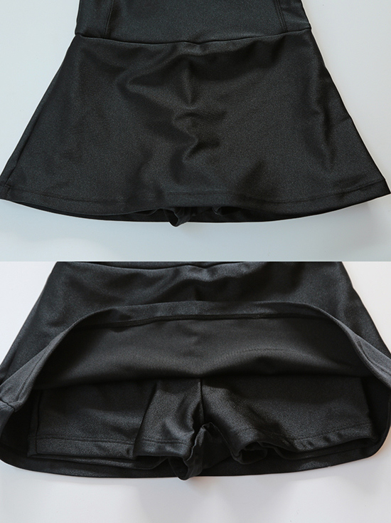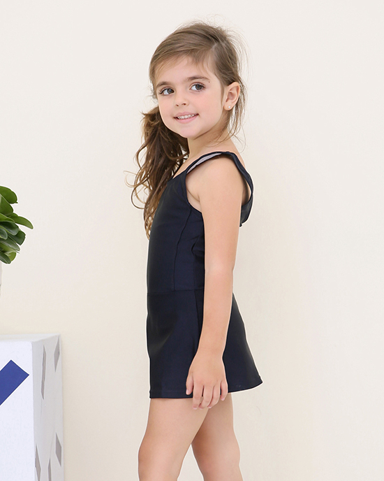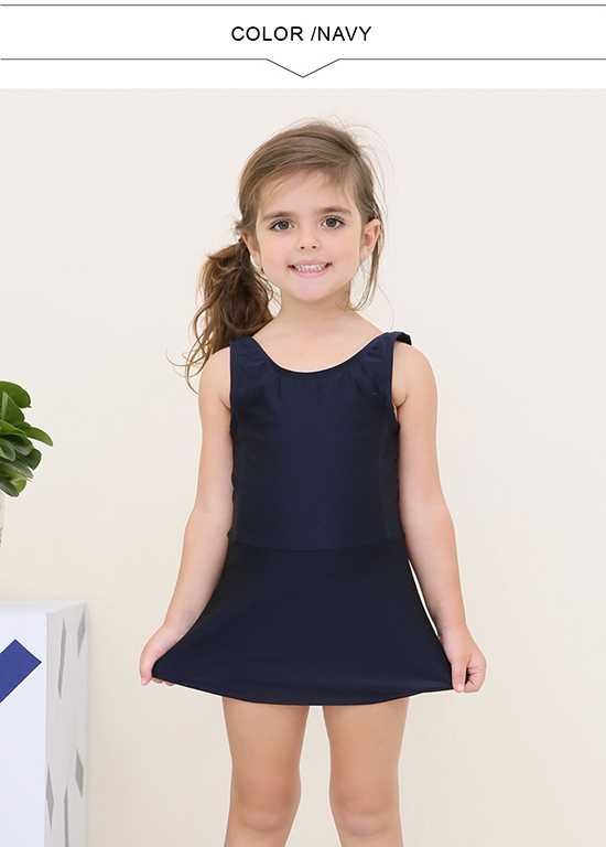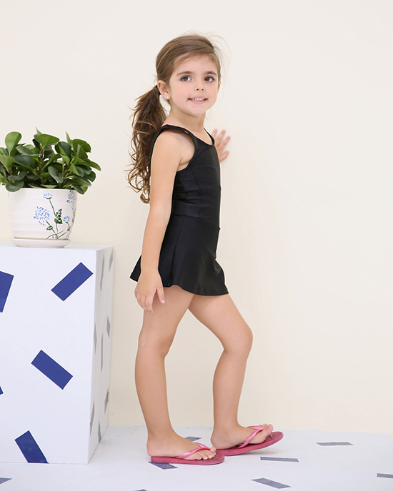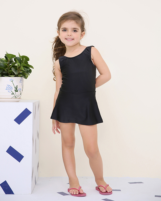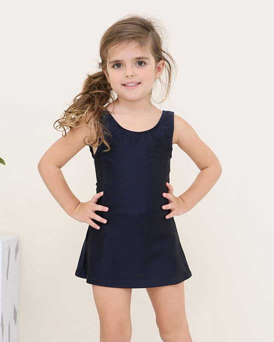 - スタイル:袖なしのワンピース型に、「活動しやすい長さ」のスカートが一体に付いたデザイン。スカートは水泳時の腕・脚の動作を妨げない適度な広がりに調整されており、同時に子供が安心して着用できる「適度なカバーリング」を実現しています。