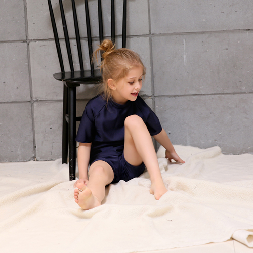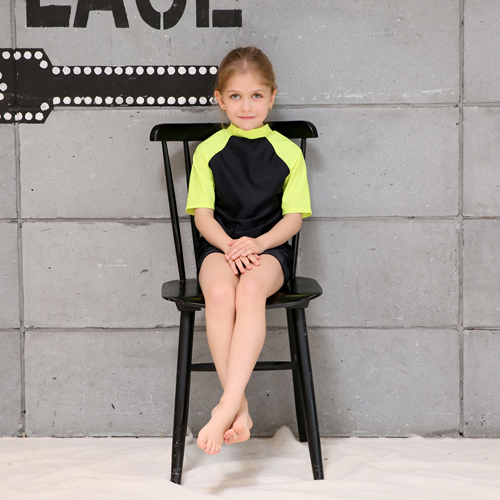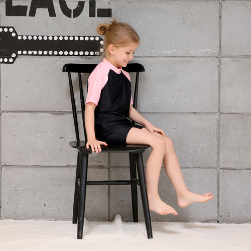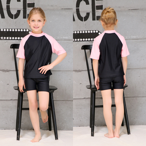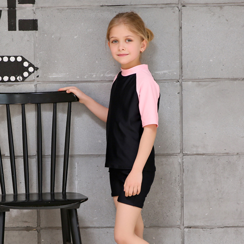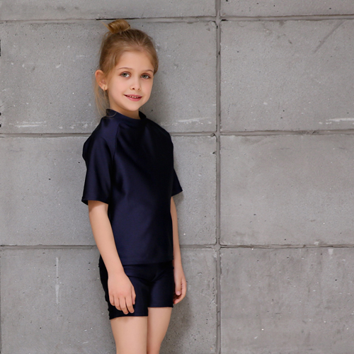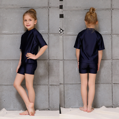 - 半袖ラグラン袖トップス:肩周りのシームラインが脇に寄ったラグラン袖なので、水泳時の肩の動きが非常にしやすく、授業でのストローク練習や遊びでも拘束感が少ないです。