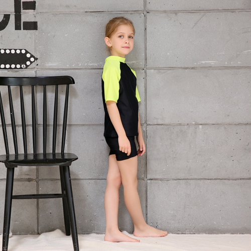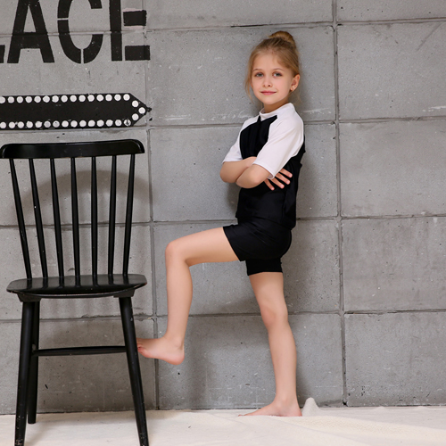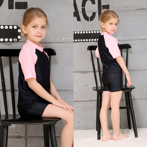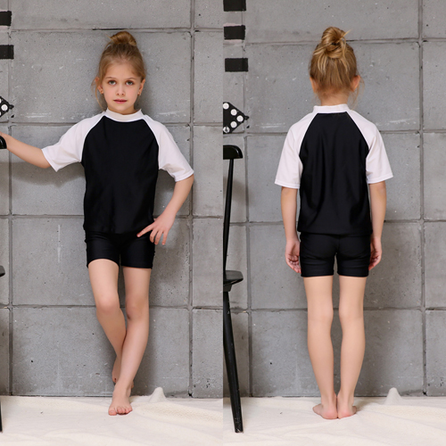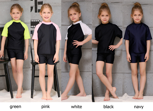 こちらは日本の学校向けにデザインされた女児用水着で、水泳授業や学校のプール活動に最適なセパレート(上下セット)仕様です。