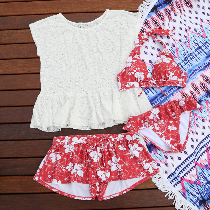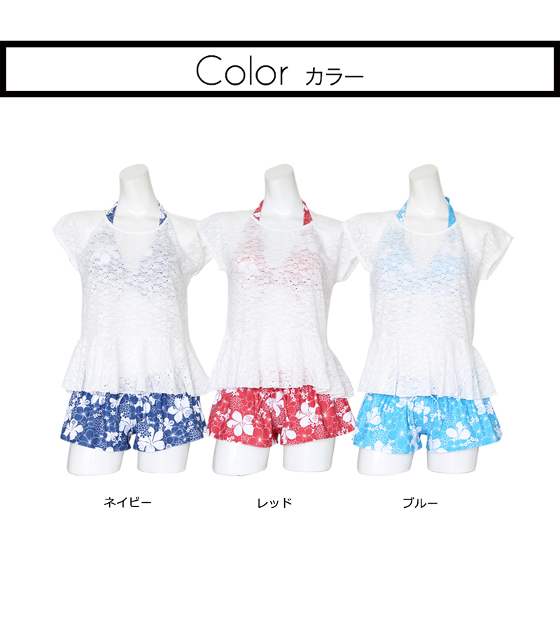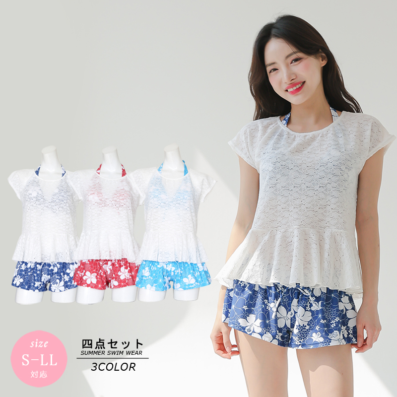 レースワンピーススカパン水着4点セット