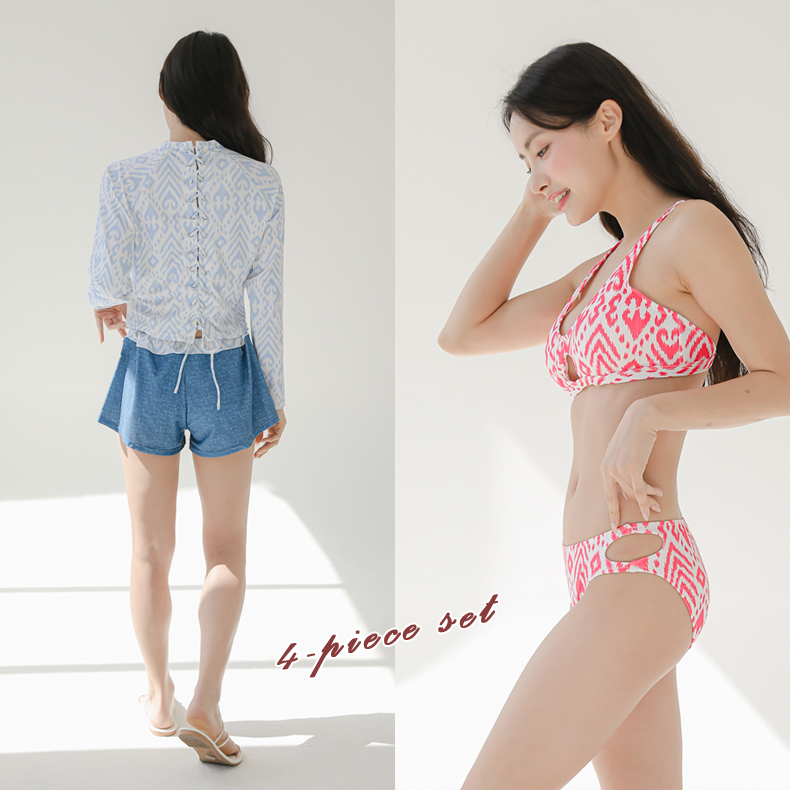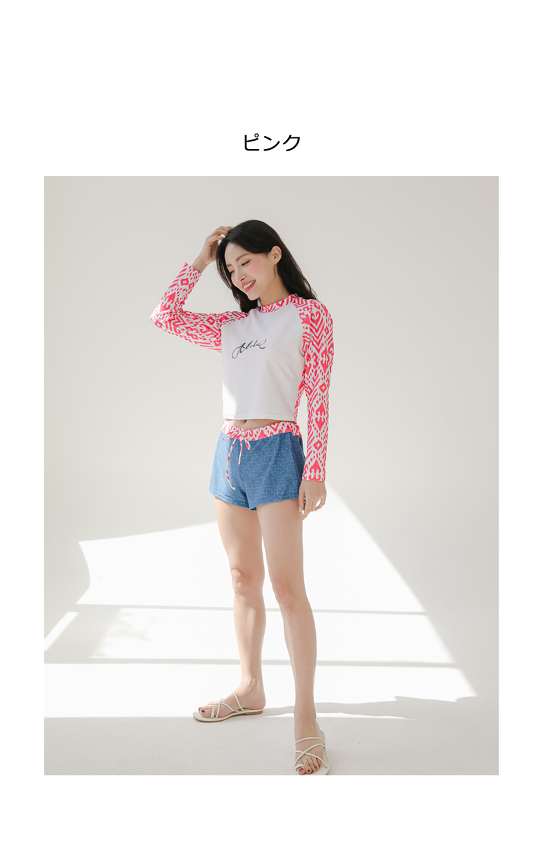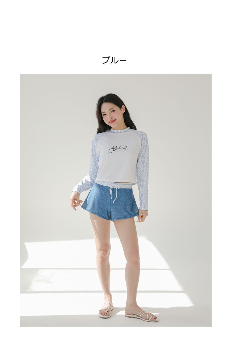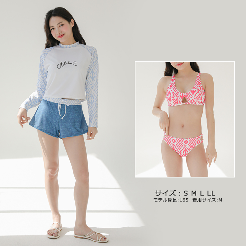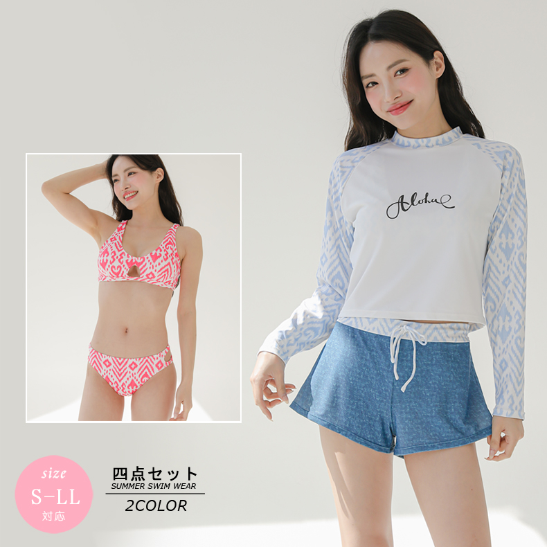 Tシャツとショットパンツとタントップとショーツの水着4点セット UPF50プラス紫外線防止、通気性、速乾、対塩素、 材質:210G ポリエステル84%/ポリウレタン16% 日本語洗濯ネーム表示と日本向の品質、色堅牢度が4級以上 Sサイズ(バスト約79〜83cm ヒップ82〜90cm ウエスト58〜64cm) Mサイズ(バスト約83〜85cm ヒップ87〜95cm ウエスト64〜70cm) Lサイズ(バスト約85〜88cm ヒップ92〜100cm ウエスト70〜78cm) LLサイズ(バスト約88〜95cm ヒップ100〜108cm ウエスト78〜85cm)
