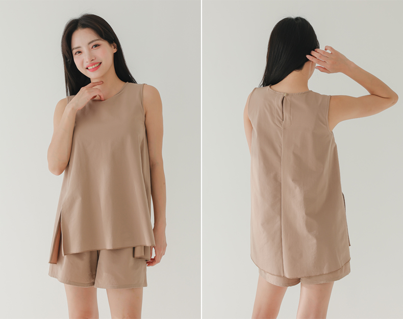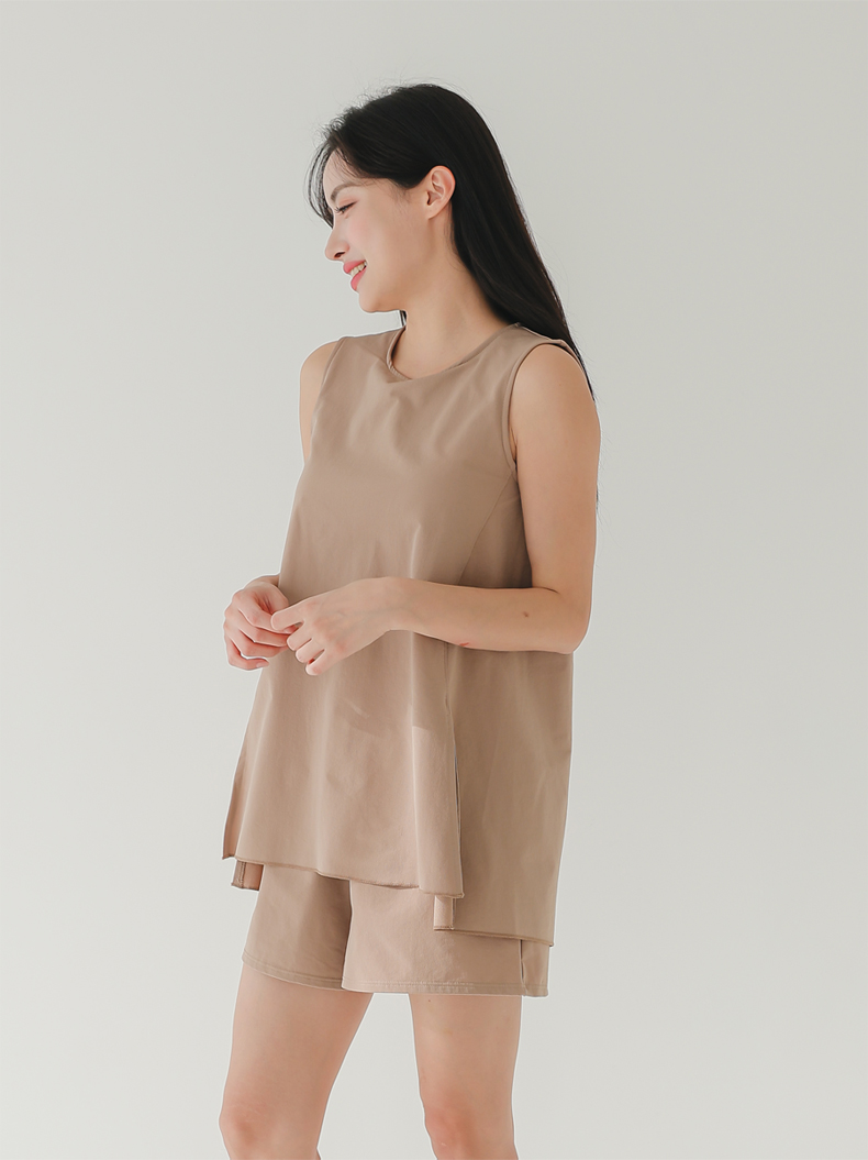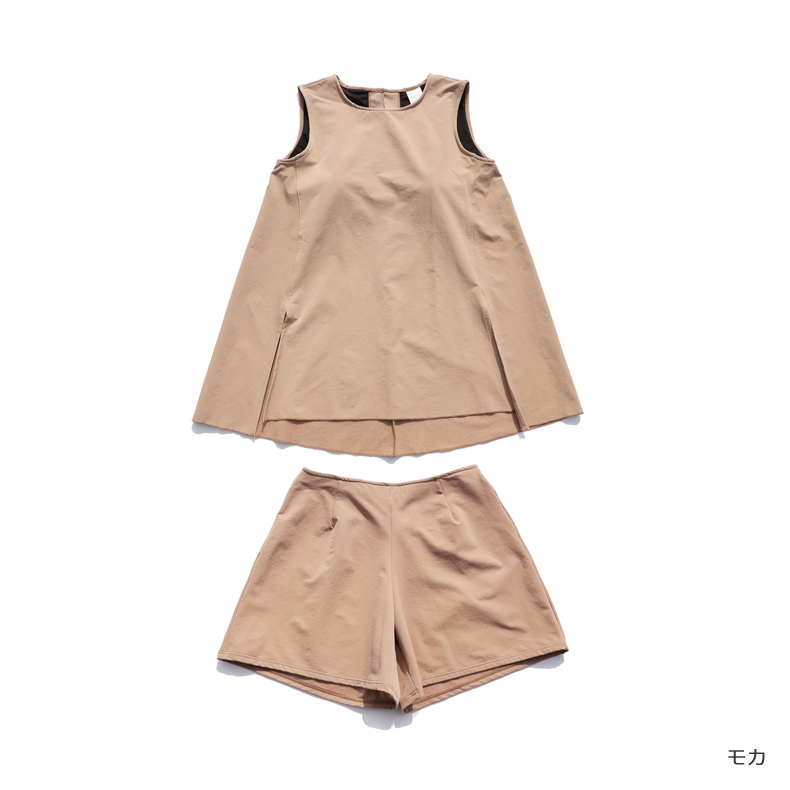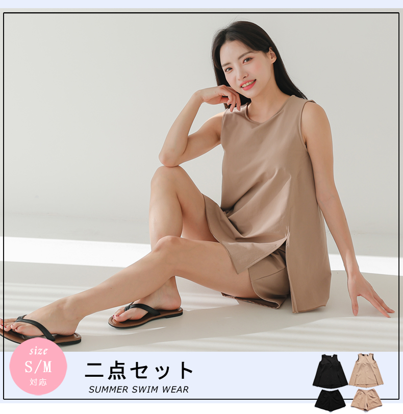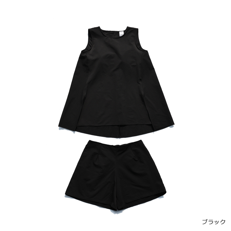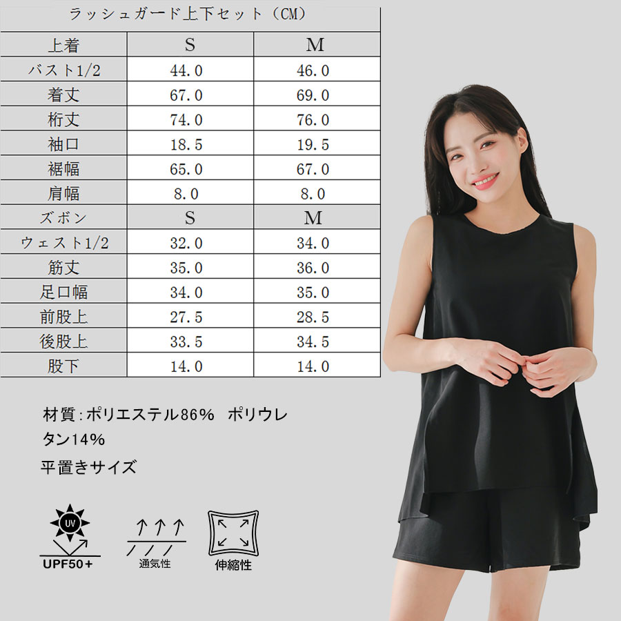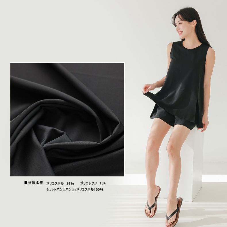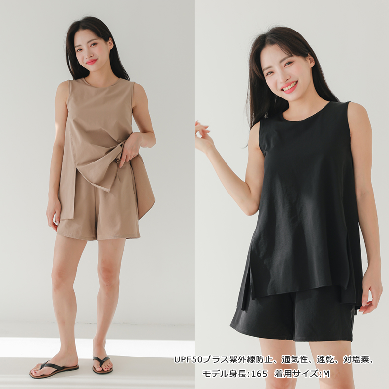 袖なしカップ着きラッシュガードとインナー着きショットパンツ上下セット 普通着水着 ファッション水着 オシャレー水着 布帛素材水着 シンプルデザイン [ZO2405]