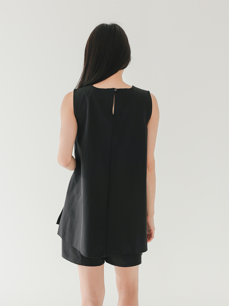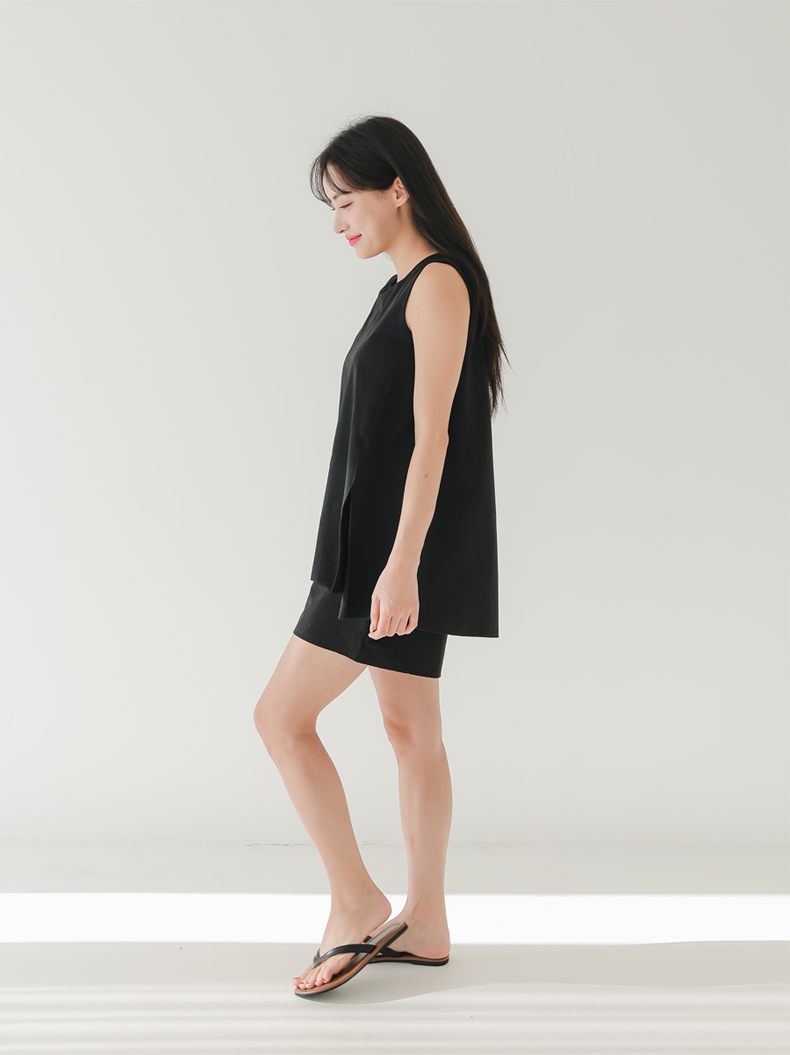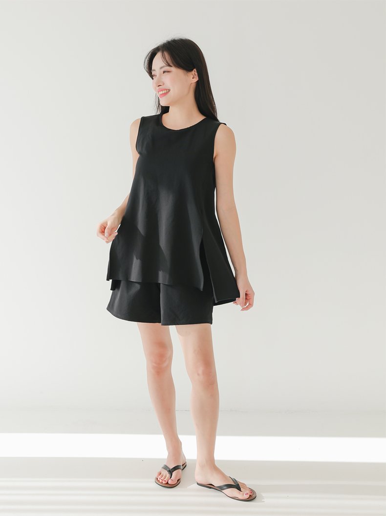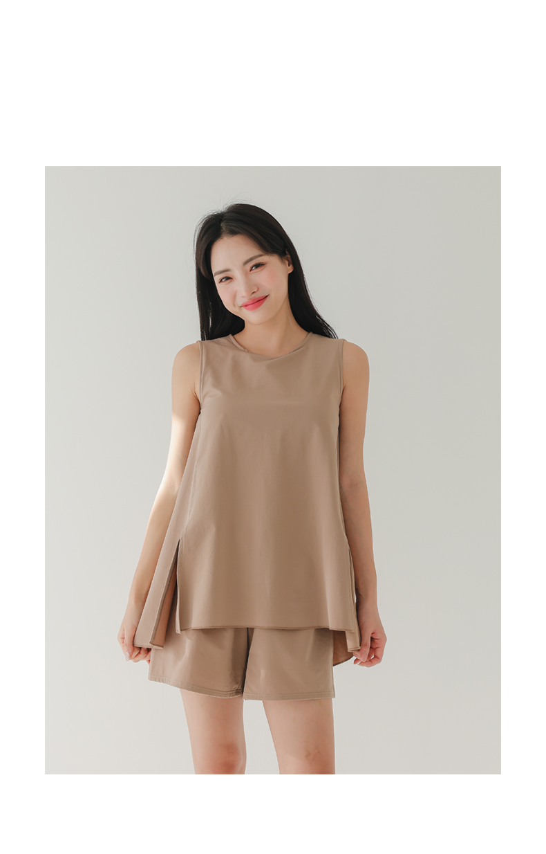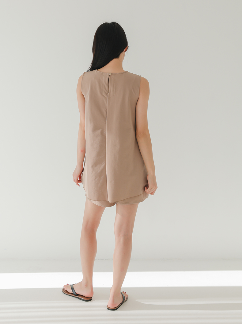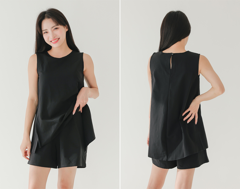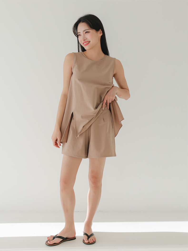袖なしカップ着きラッシュガードとインナー着きショットパンツ上下セット 普通着水着 ファッション水着 オシャレー水着 布帛素材水着 シンプルデザイン [ZO2405]