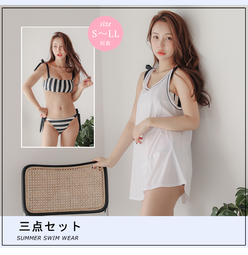 ワンピース付き水着3点セット