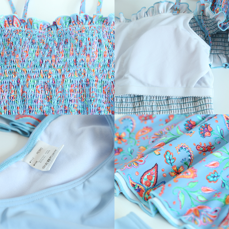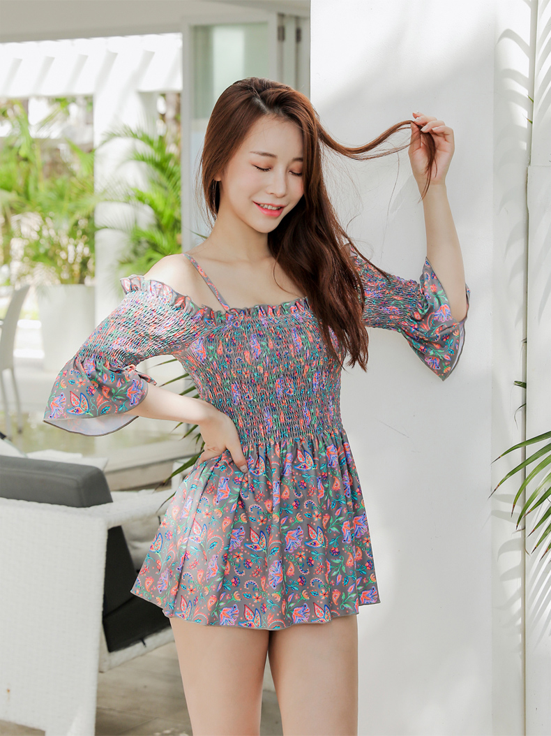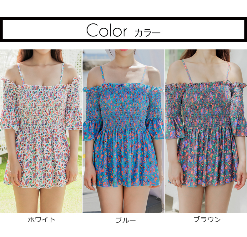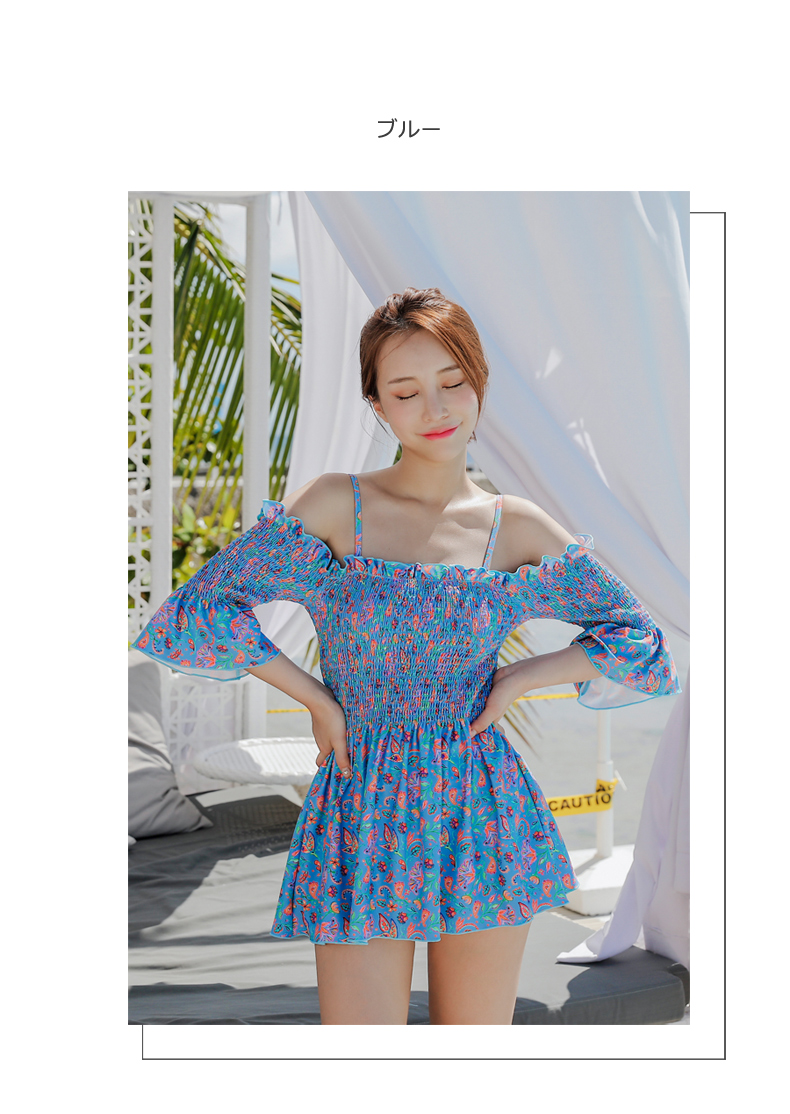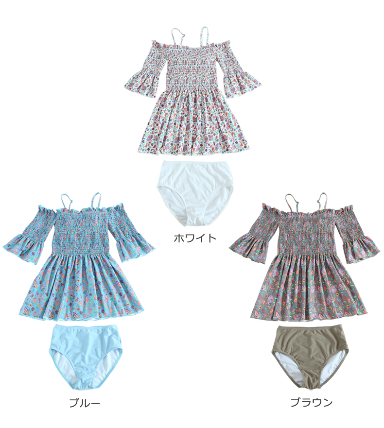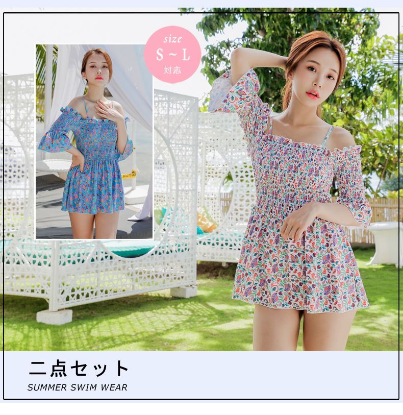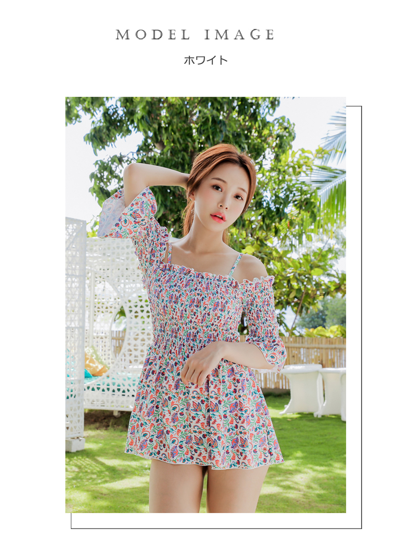 シャーリングカップ付きワンピースとハイウェストショーツ水着2点セット [SWZ1966]