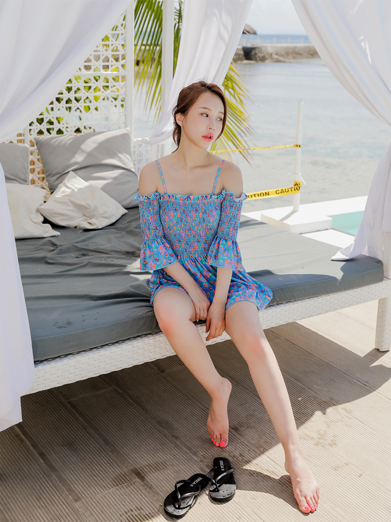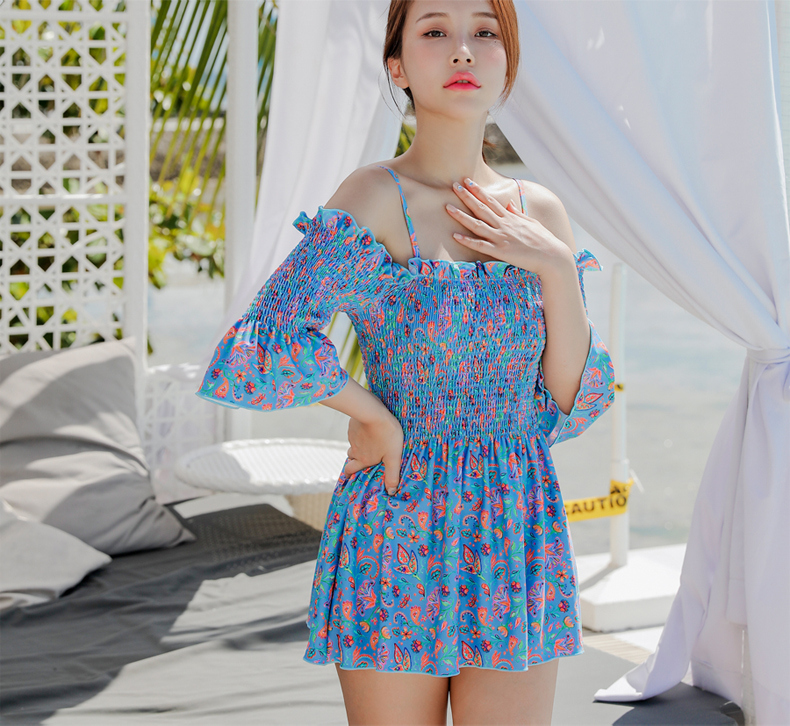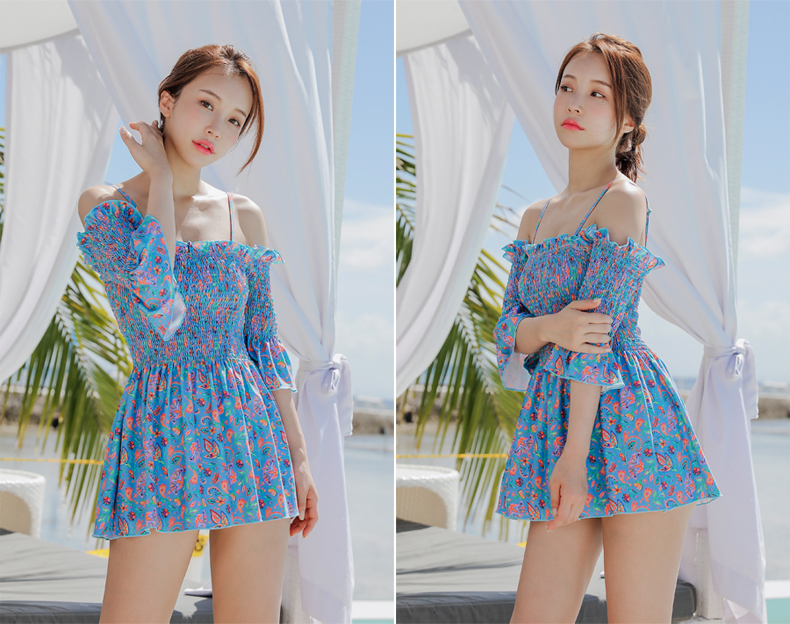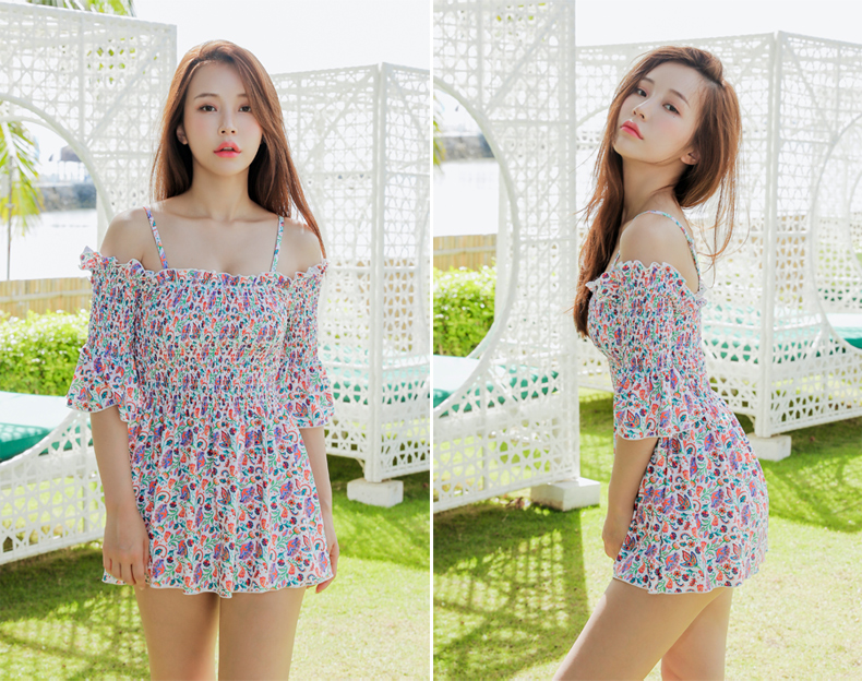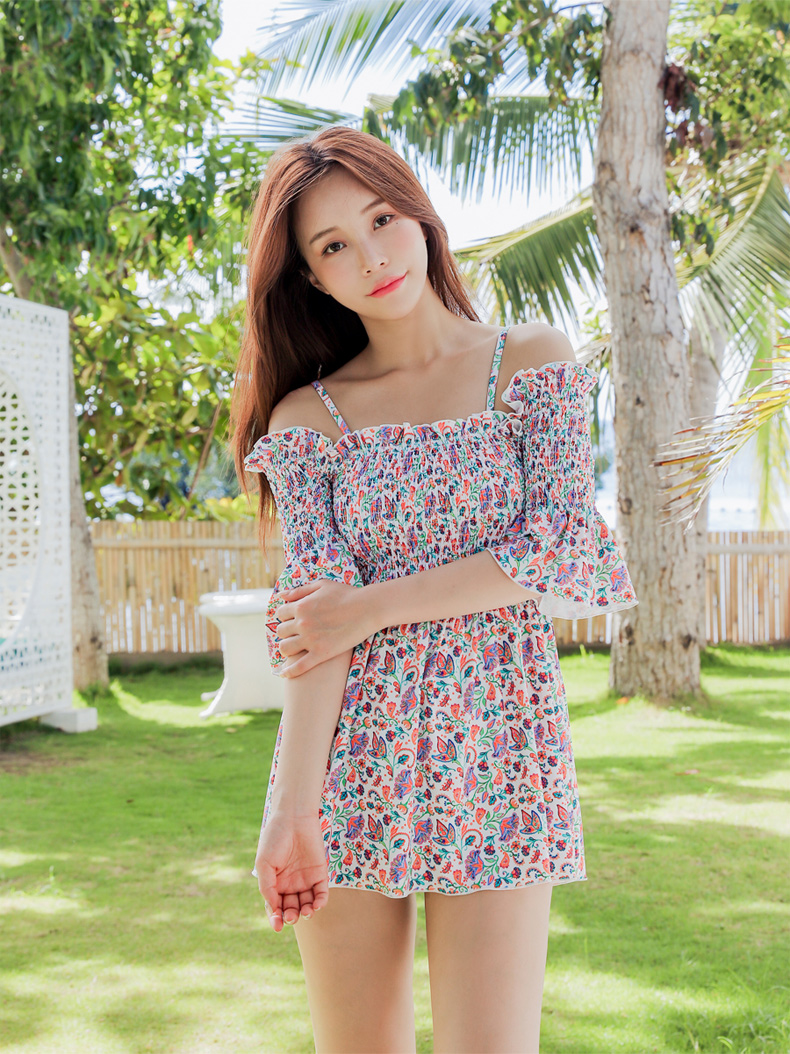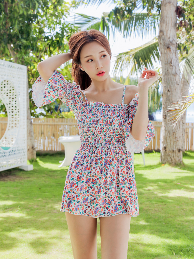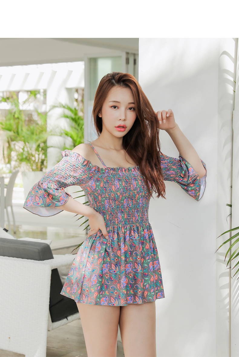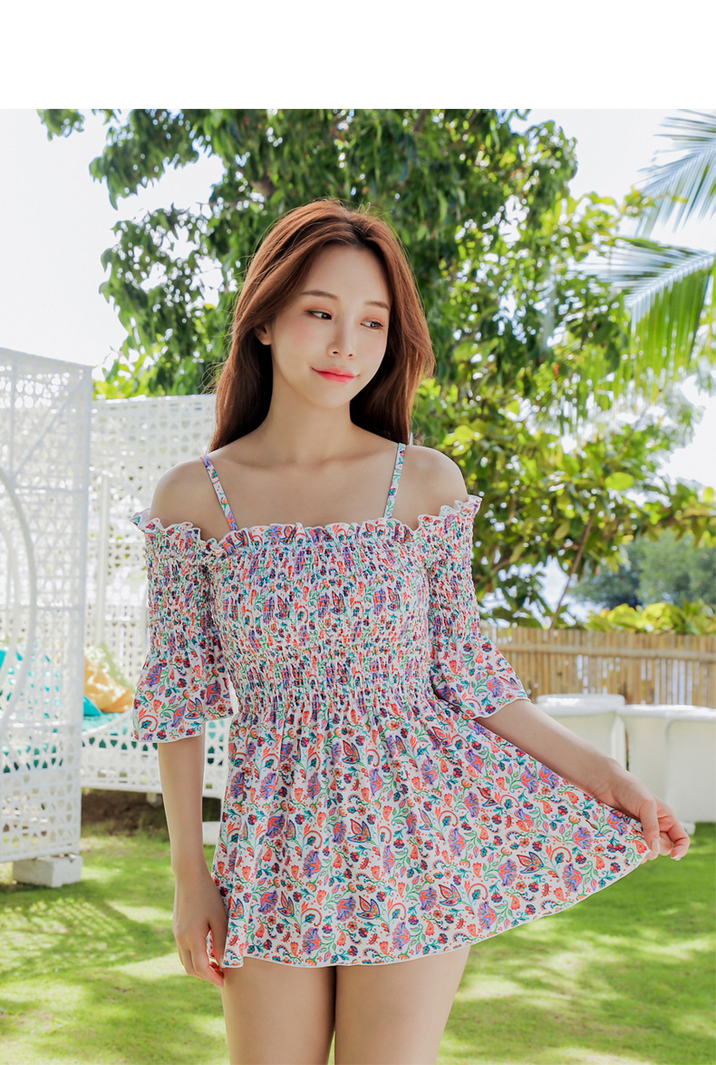シャーリングカップ付きワンピースとハイウェストショーツ水着2点セット [SWZ1966]