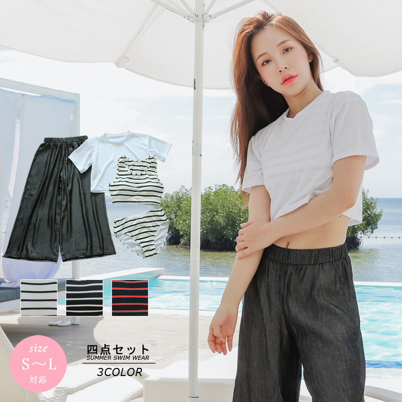 Tシャツとロングパンツとスポーツトップスとショーツ4点セット水着