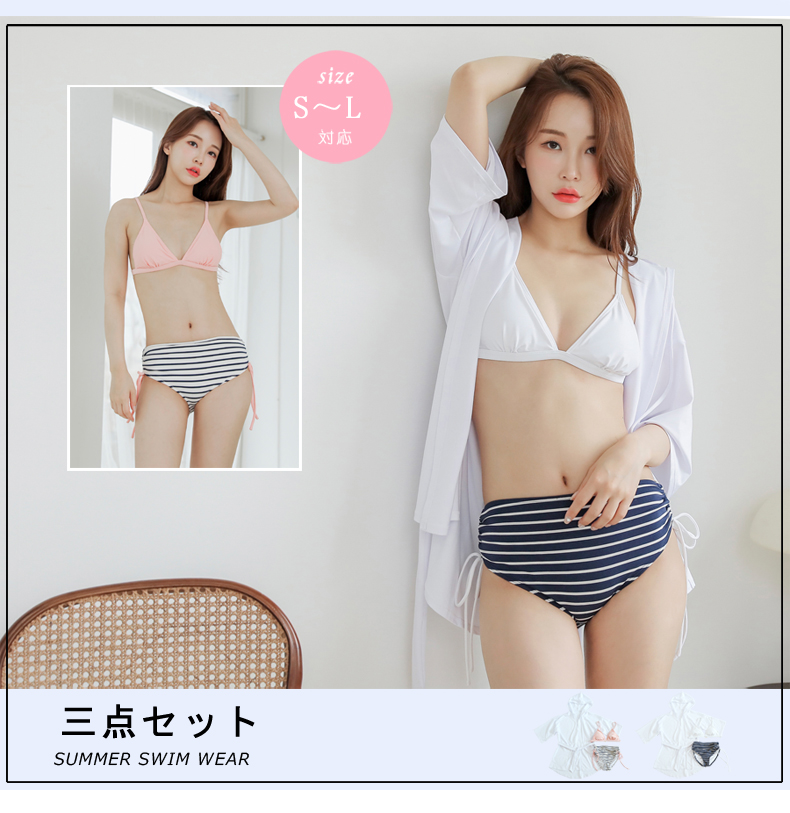 ブラーとハイウェストショーツと シャツ3点セット水着