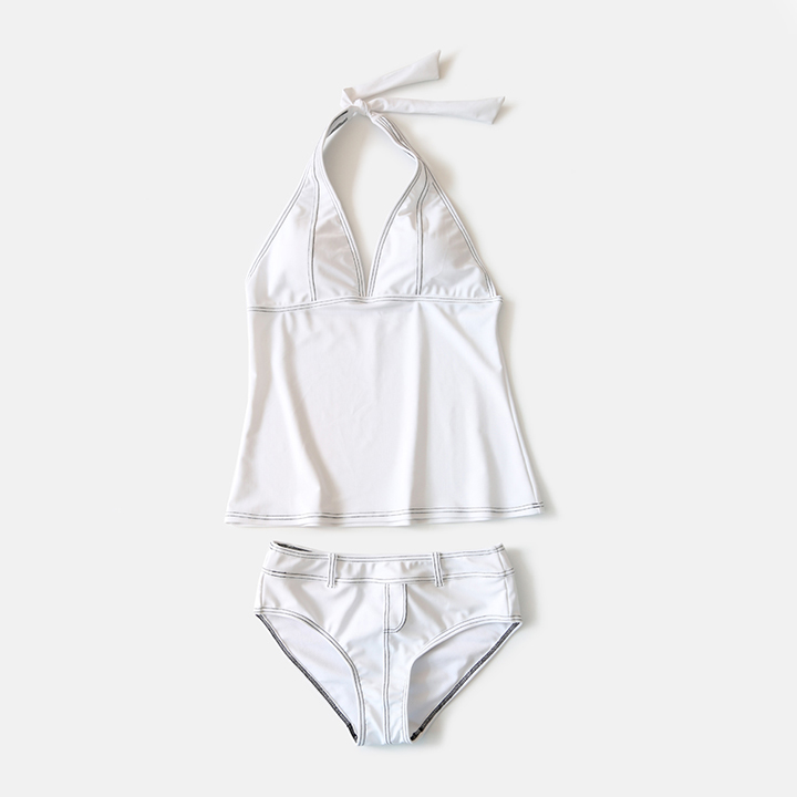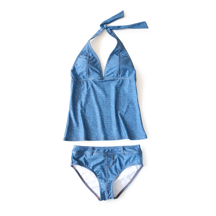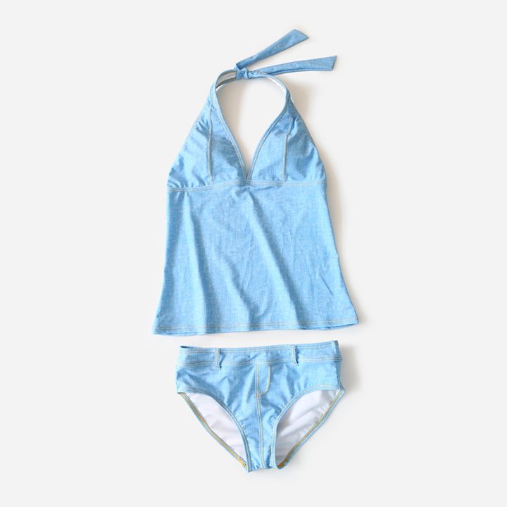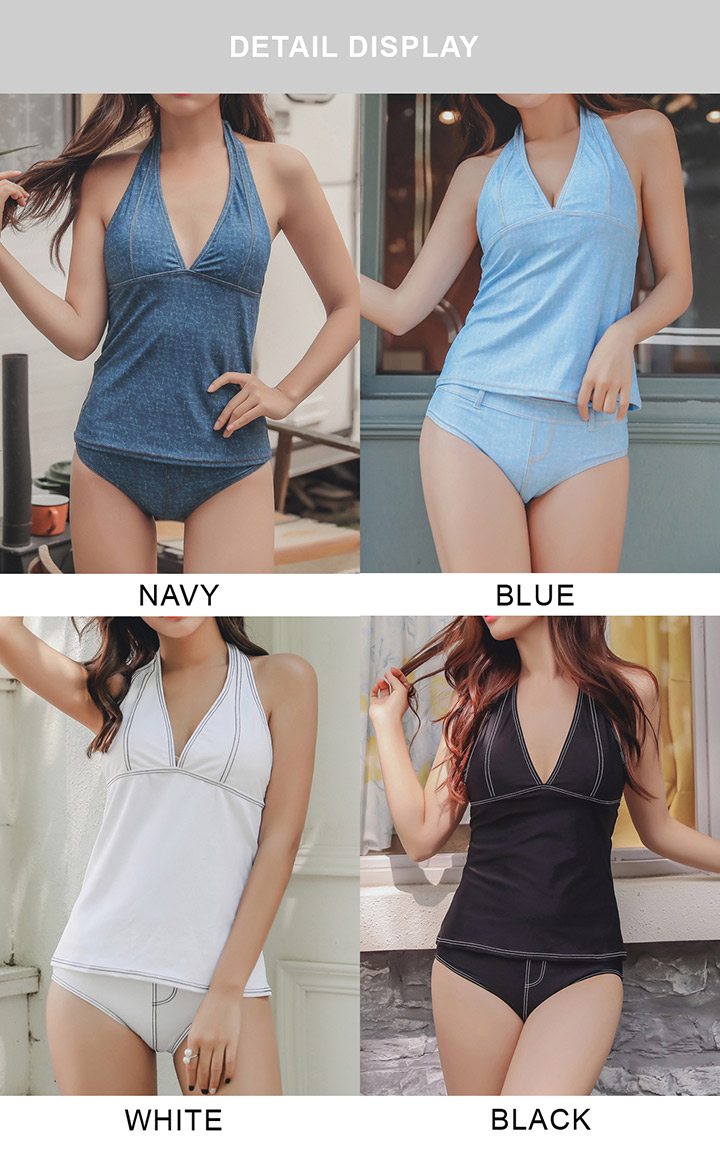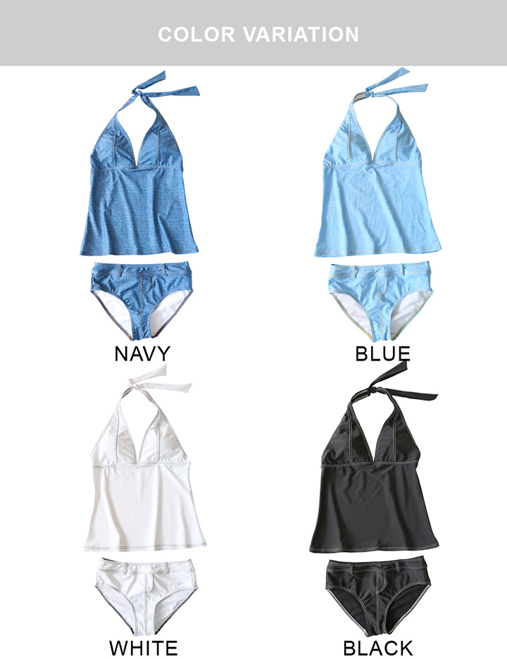 デニム風タンキニワンピースとハイウェストショーツ2点セット水着 [SW2902]