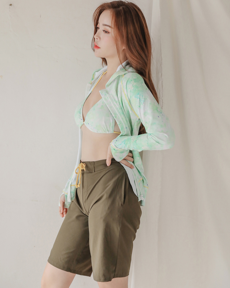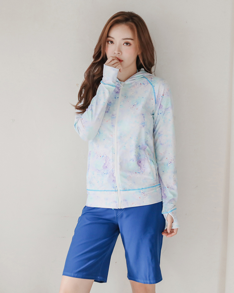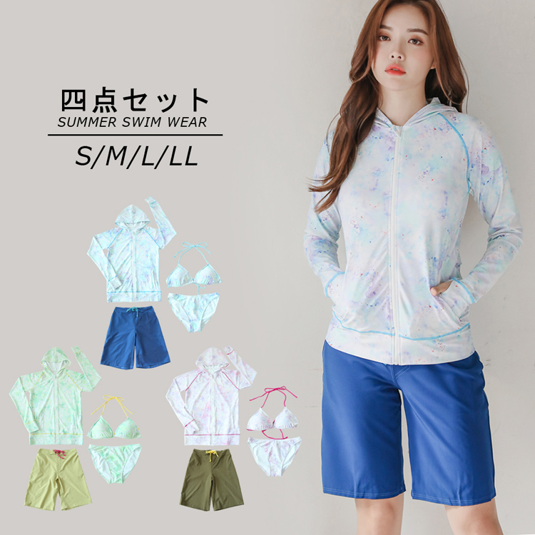 水着カバーウェアラッシュガードハーフパンツ4点セット