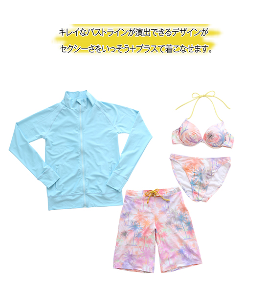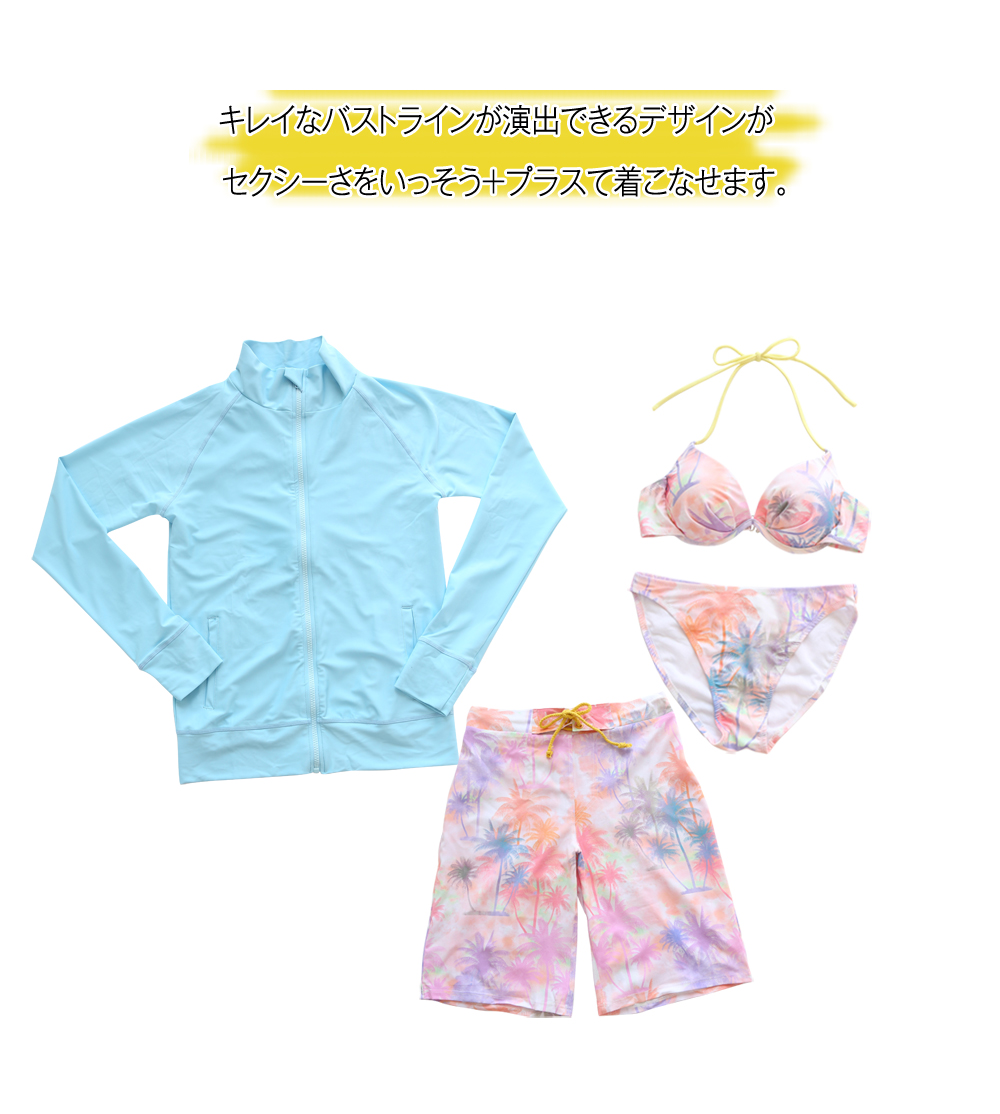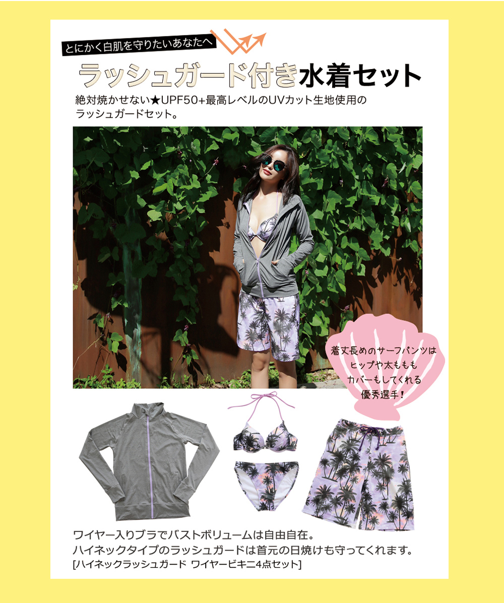 UVカットUPF50+ラッシュガードサーフーパンツビキニ4点セット