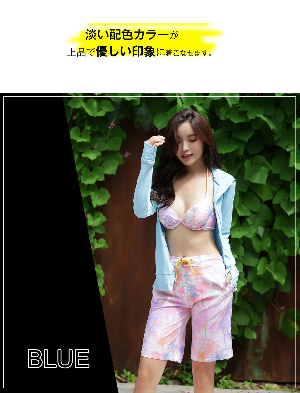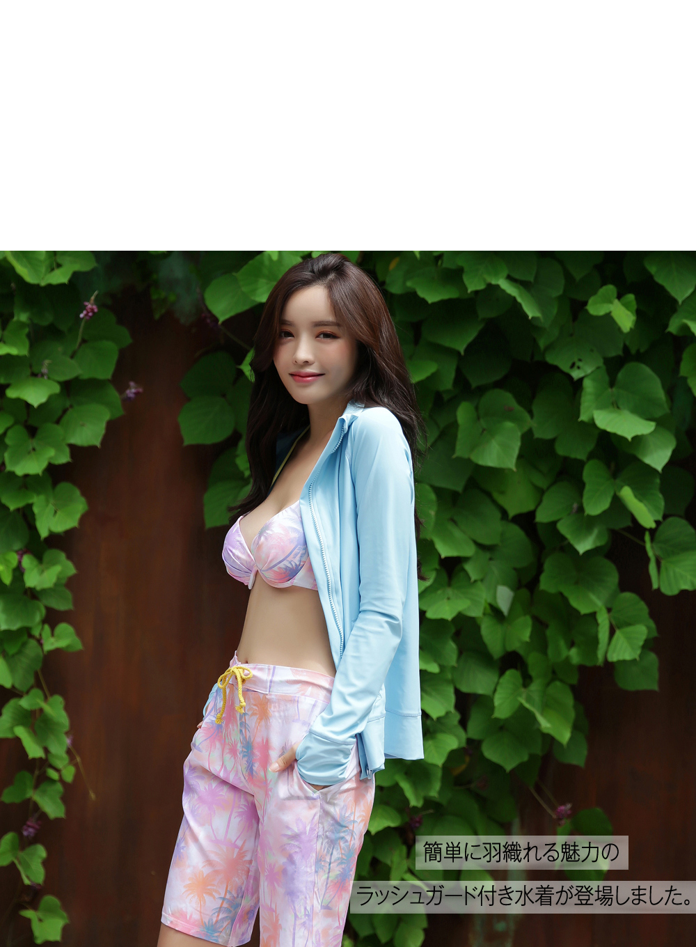 UVカットUPF50+ラッシュガードサーフーパンツビキニ4点セット [AKF92]
