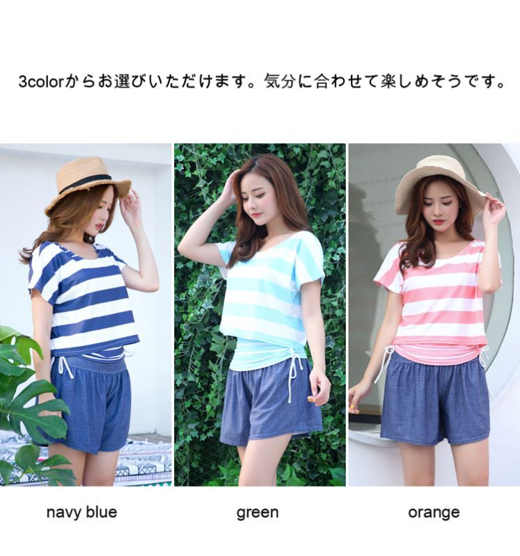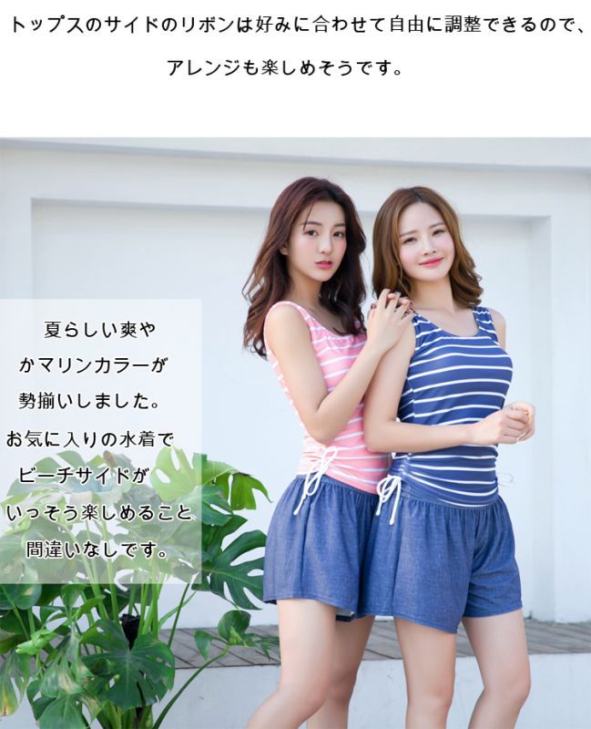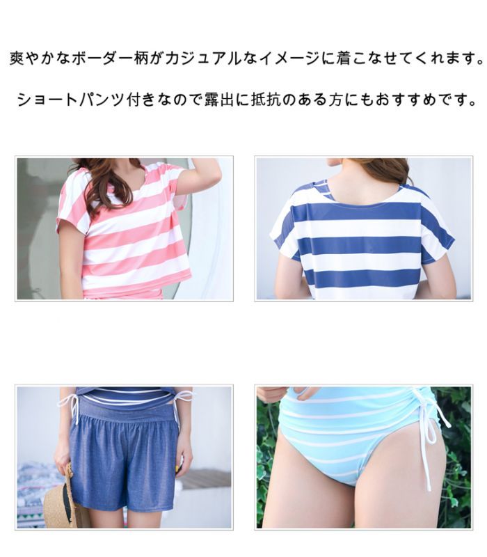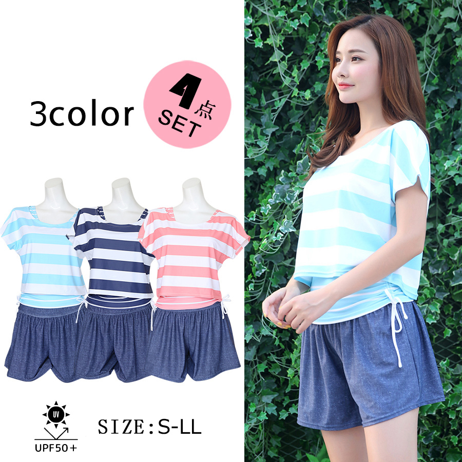 カバーアップ4点セット水着 レディース タンキニ 4点セット 体型カバー オーバーTシャツ ショートパンツ タンクトップ ラッシュガード カバーアップ ゆったり ママ水着 UVカット