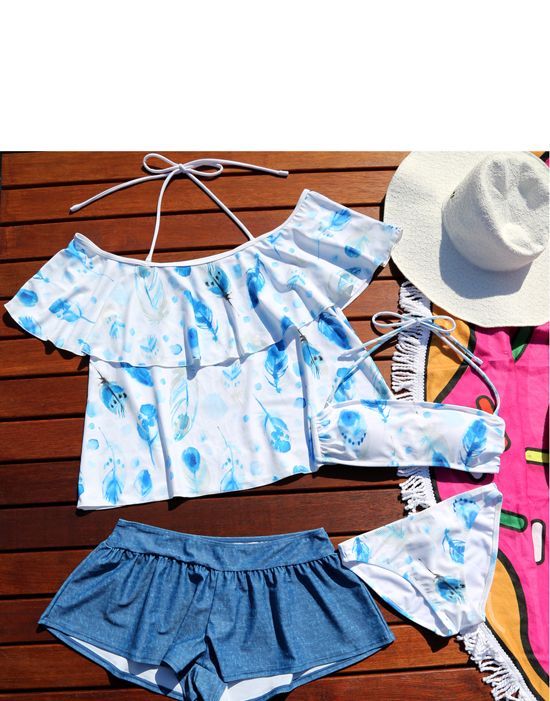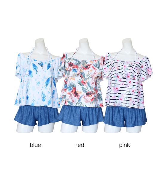 オフォショールワンピースカバーアップ4点セット水着 [SW829]