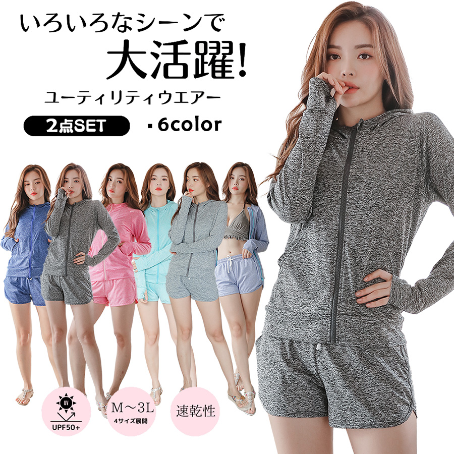 UVカットラッシュガードとショットパンツ2点セット ラッシュガード レディース ハイネック セットアップ ハーフジップ 水着 体型カバー UPF50+ 接触冷感 98%uvカット 夏 日焼け 止め 防止 暑さ対策グッズ [SWYZ1856]