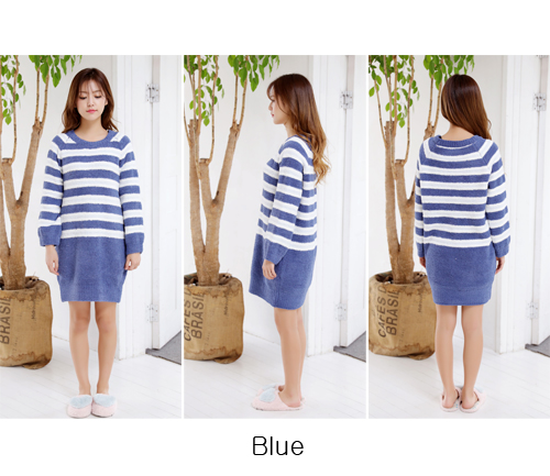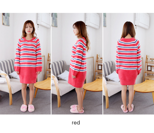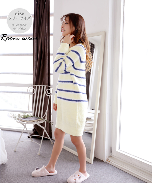 ふんわりな色味が可愛い、ボーダー柄のもこもこルームウェアセットです。