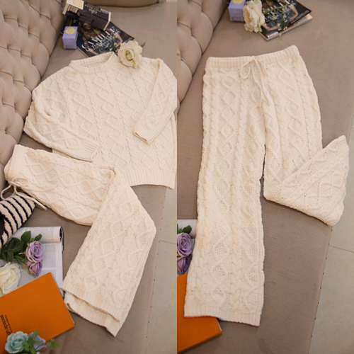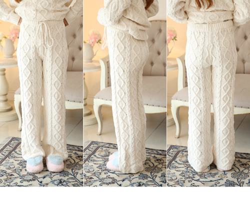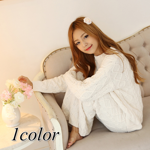 ケーブル編みが可愛い、見た目にも暖かなふわもこなルームウェアセットです。