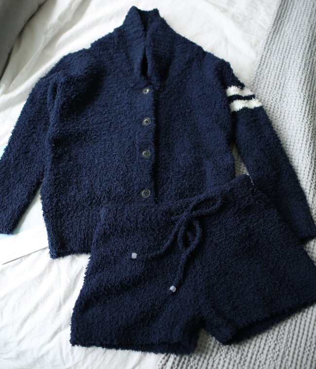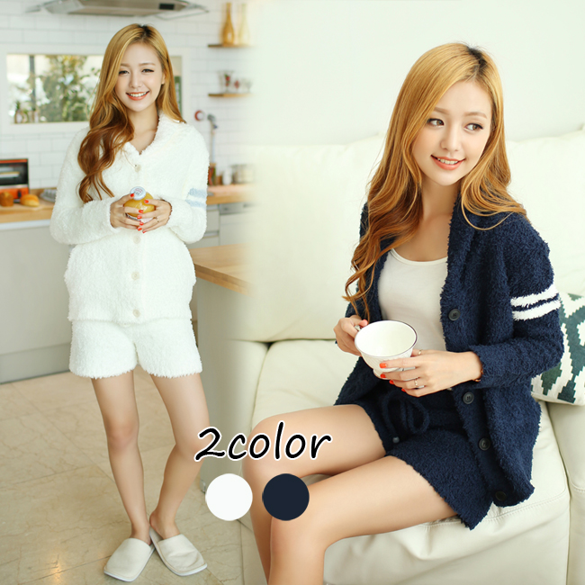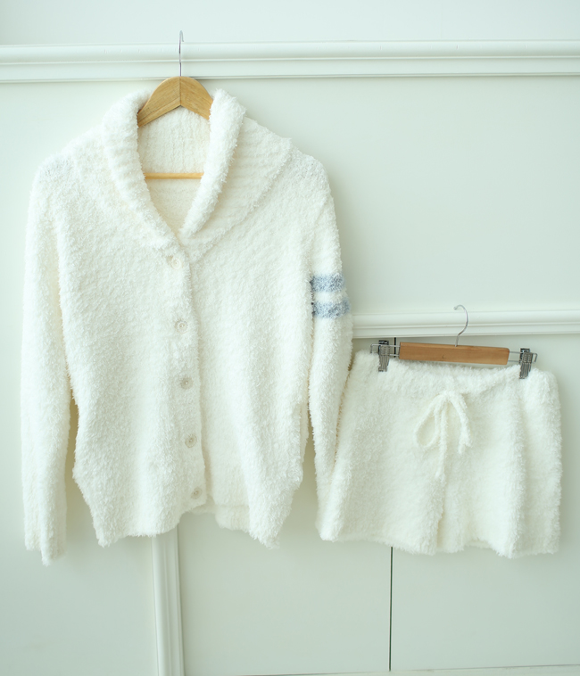 もこもこ柔らか素材の、ショールカーデ+ショートパンツのルームウェアセットです。