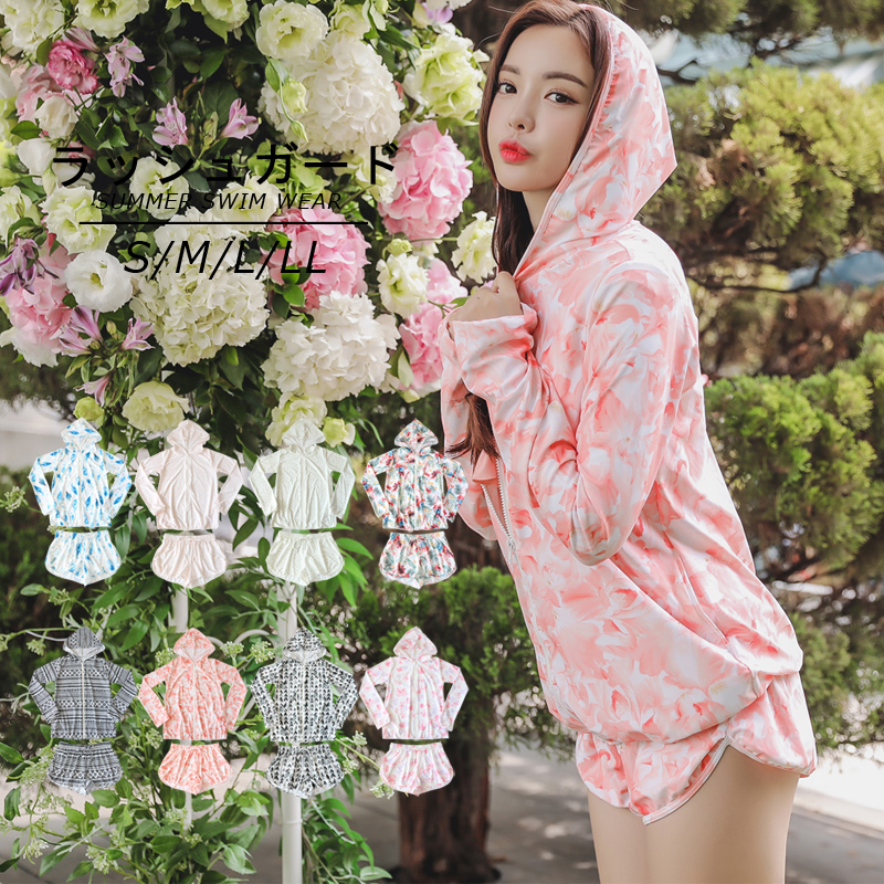 ラッシュガードとショットパンツ2点セット UVカット上下セットラッシュガード 材質:水着生地 水着を痛める塩素に対して強いタイプのポリウレタン糸を使用していますので、 陸でのスポーツとプールでの着用も可能です 紫外線対策UPF、サイズ改良し、材質も改良されてます。 シンプルで使いやすい!コレ1枚でUV対策! 安心のUPF50+(肌に有害な紫外線を98%以上カット)生地使用! 様々なシーンで使える「着るだけ」UV対策ウェア。 海やプール、アウトドアでの日焼け予防はもちろん、 ランニング等の運動やタウンユースでも大活躍! 爽やかなマリンカラーで夏の海カジュアル!