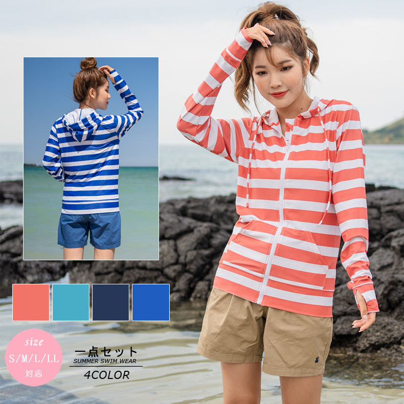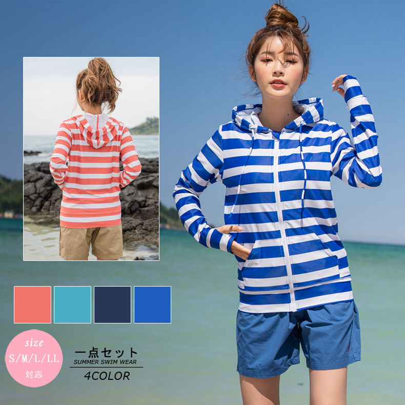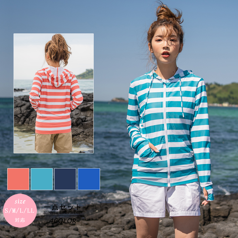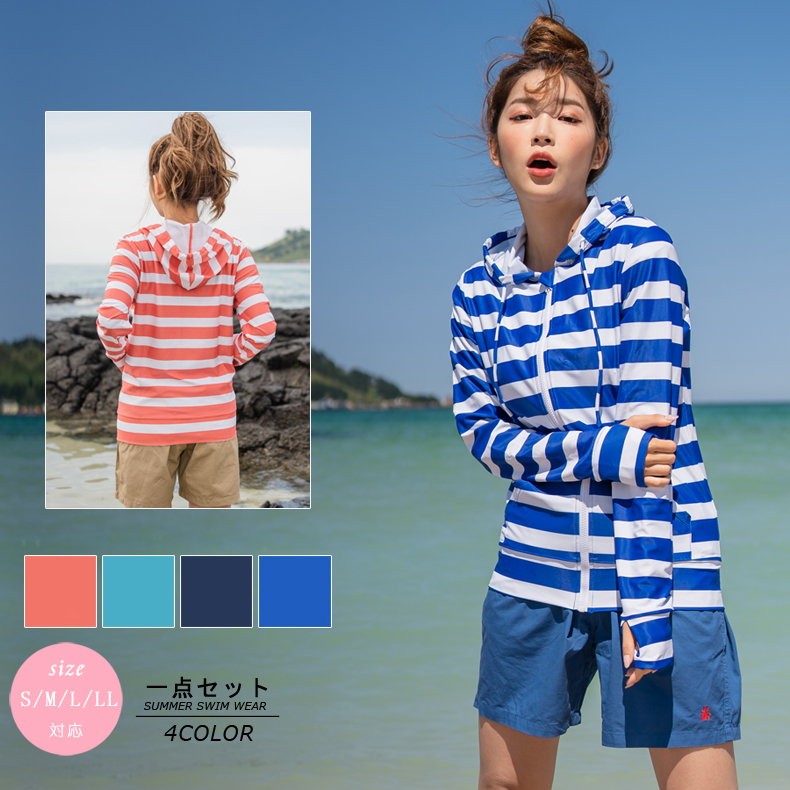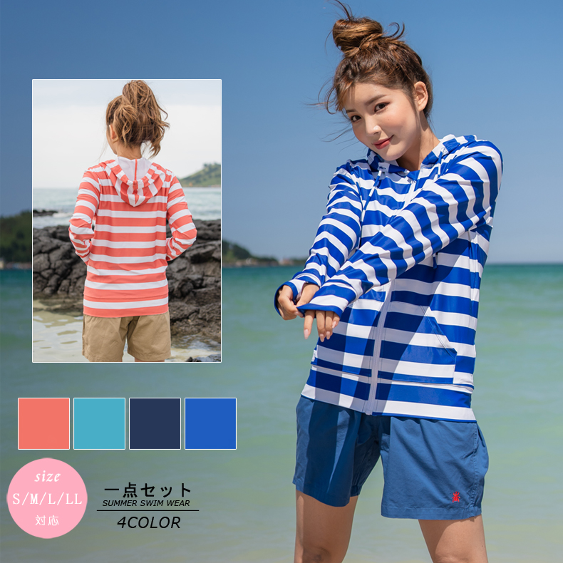 ボーダー柄UPF50+ラッシュガード [SW21803]