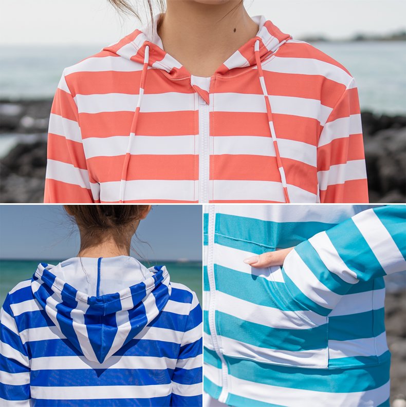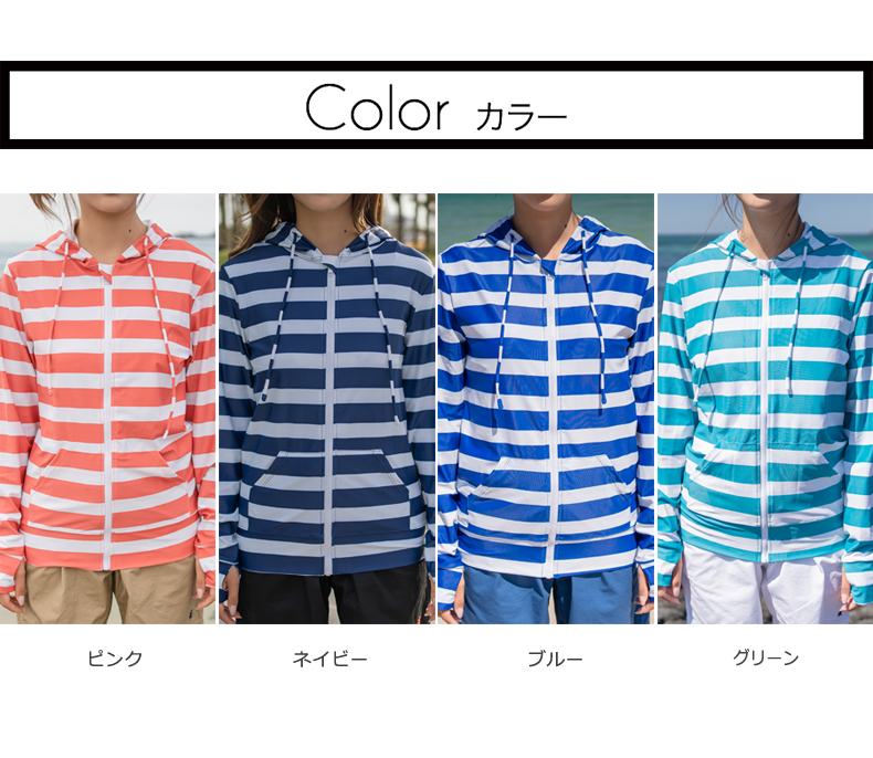 ボーダー柄UPF50+ラッシュガード