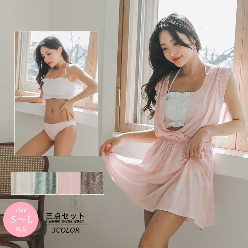 シャーリング仕様ブラーとショーツとワンピースと3点セット [FL1945]