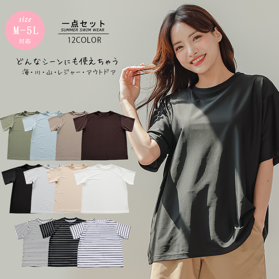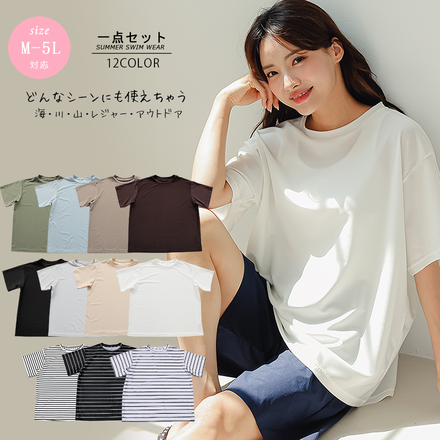 サイズはM〜5Lまで展開され、無地・ストライプ柄を含む11 色の豊富なバリエーションから選べます。 速乾性に優れた素材を使用しているため、水に濡れてもすぐに乾き、快適に着用できます。 水着の上から着るカバーアップとしてだけでなく、普段使いの T シャツとしても活躍する万能アイテムです。 海・川・山・レジャー・アウトドアなど、どんなシーンにも使えるので、あなたのライフスタイルにぴったりフィットします!